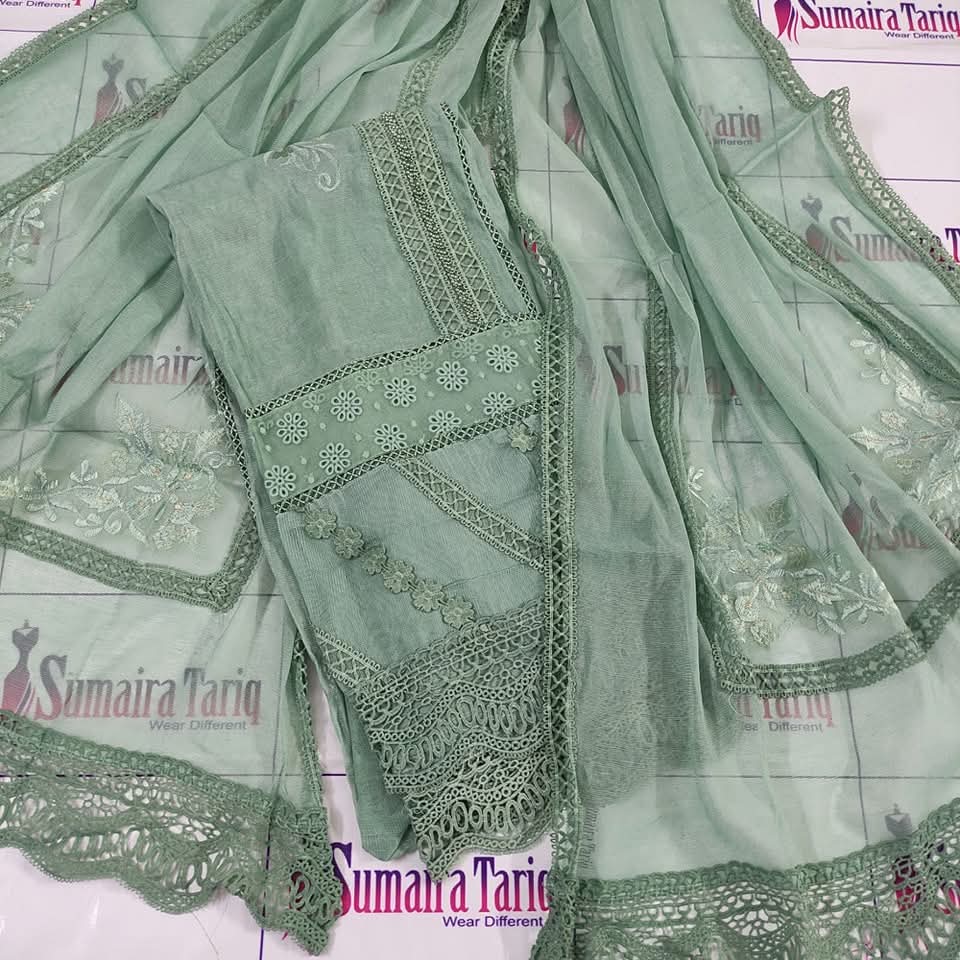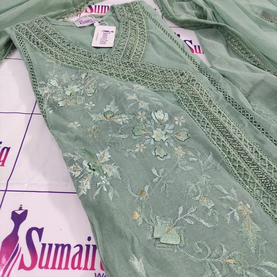 ✨ Nazneen Collection – New Arrivals ✨ Elevate your wardrobe with our Nazneen Collection, a perfect blend of traditional charm and modern sophistication. Our Angarkha A-line semi-stitched shirt is crafted from premium Khaadi Net fabric, adorned with: 💖 Exquisite lacing work 🌼 3D floral embellishments & delicate embroidery 🌸 Elegant Chickenkari border Product Details: Price: Rs. 6000 Available Colors: 10 beautiful shades Set Includes: Shirt | Dupatta | Trouser Dupatta: Khaadi Net (2.75 yards) Trouser: Raw Silk (Unstitched) Shirt Length: 50” | Width: 35” (fits S–XXL) Cash on Delivery: Rs. 300 all over Pakistan 🇵🇰 International Shipping Available 🌍 Indulge in timeless grace and impeccable craftsmanship with Nazneen — where every detail speaks elegance. 📞 For Orders: 0321-2533733 🌐 Shop Now: www.purple-patch.com.pk