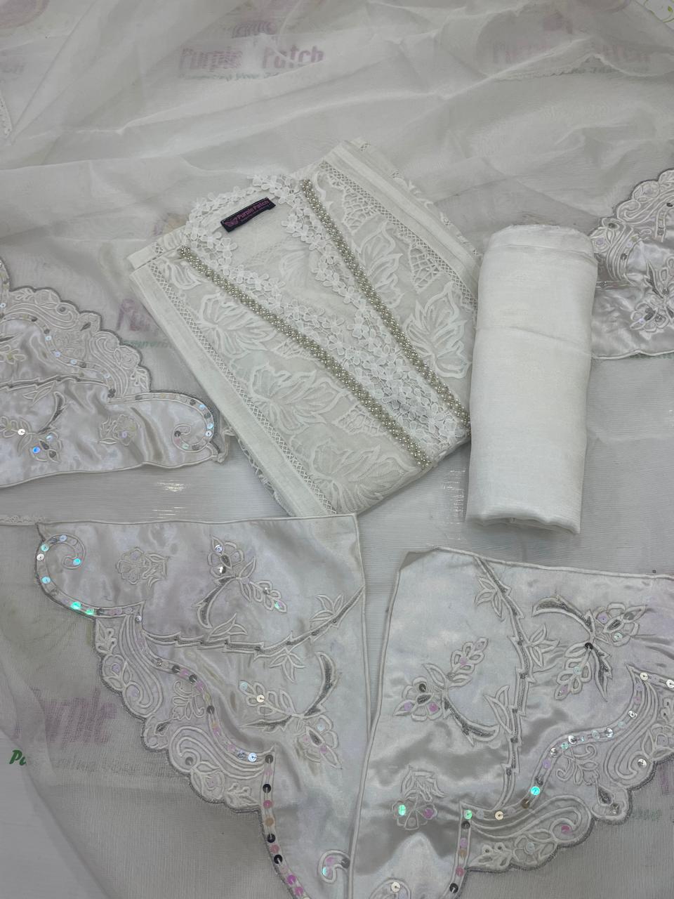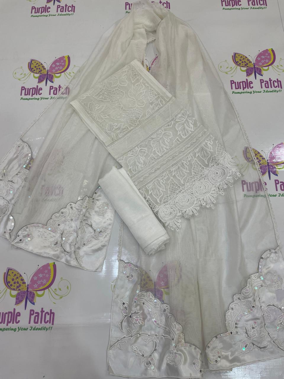 : 🌸 Gulmohar Collection – Festive Eid Collection 2026 | 3 Piece Khadi Cotton Net Suit for Women in Pakistan Celebrate Eid 2026 in grace & elegance with our Gulmohar Collection – Premium 3 Piece Khadi Cotton Net Suit. Designed specially for Pakistani summers, this soft, breathable & summer-friendly fabric keeps you stylish and comfortable all day long. This 3 piece semi-stitched women’s suit can be stitched from Small (S) to XXL, making it perfect for all body types. The outfit features a Khadi Cotton Net embroidered shirt & dupatta, paired with a luxury rawsilk trouser. The dupatta is beautifully finished with silk appliqué on all four corners, detailed with embroidery & handwork, while the shirt neckline features handwork with Schiffli cutwork panel, giving a premium festive look for Eid, parties, and special occasions. Available in 9 beautiful colour options, this Eid collection is ideal for: 🌙 Eid ul Fitr & Eid ul Adha 🎉 Festive gatherings 👗 Summer wear & formal occasions ✨ Product Features: 3 Piece Semi-Stitched Suit (S to XXL) Khadi Cotton Net Shirt & Dupatta Rawsilk Trouser 9 Colour Options Handwork + Embroidery Schiffli Cutwork Panel on Neckline Summer Friendly, Soft & Breathable Fabric Dry clean recomended
