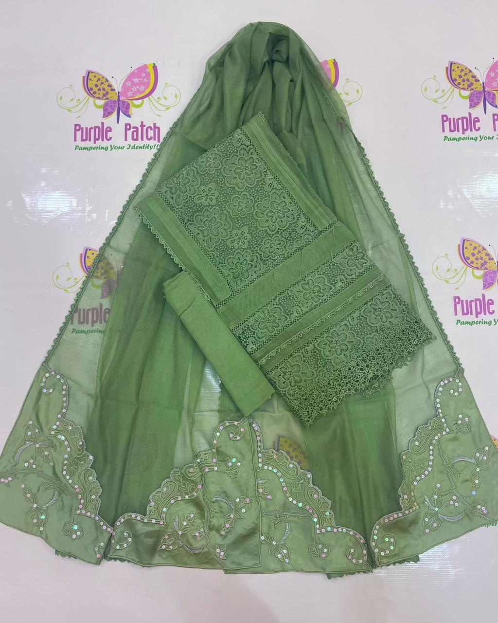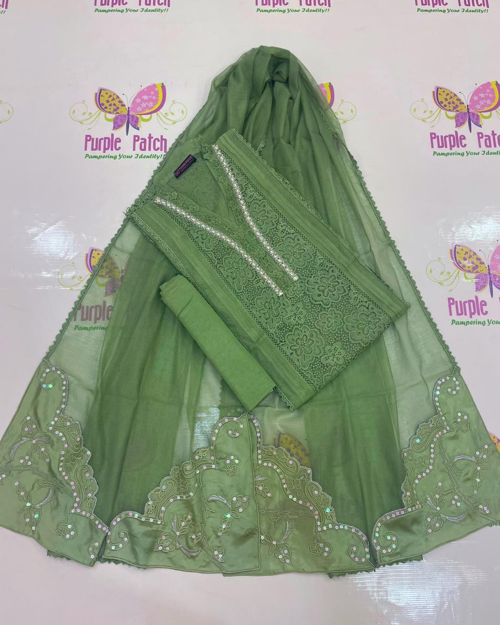 Gulmohar Collection – By Purple Patch 🌸 Embrace effortless summer elegance with our Gulmohar Collection, crafted to keep you cool, comfortable, and stylish all season long. These 3-piece semi-stitched suits are made from breathable khadi cotton net, perfect for warm days and festive evenings alike. Each outfit features intricate handwork paired with delicate embroidery, enhanced by luxurious silk appliqué detailing for a refined, graceful finish. With 11 stunning colors to choose from, this collection offers something for every mood and occasion. Designed for versatility, the semi-stitched format allows easy customization in sizes ranging from Small to XXL, ensuring a flattering fit for everyone. Product Details: * 3-Piece Suit (Shirt, Dupatta & Trouser) * Premium Khadi Cotton Net Fabric * Handwork & Embroidery * Silk Appliqué Accents * Semi-Stitched for Custom Fit * Available in 11 Colors * Size Customization: S to XXL Add a touch of timeless charm to your summer wardrobe with Gulmohar 🌿