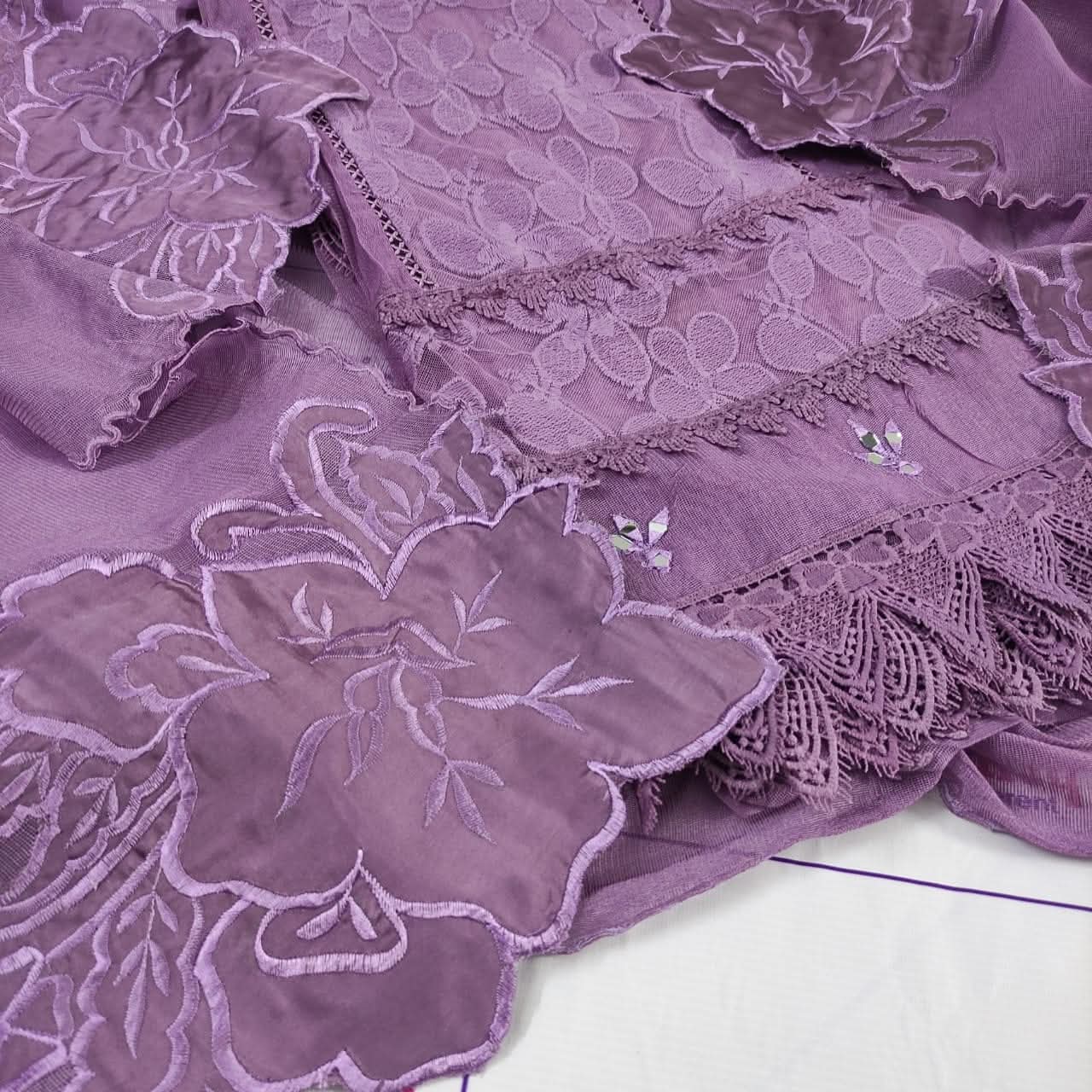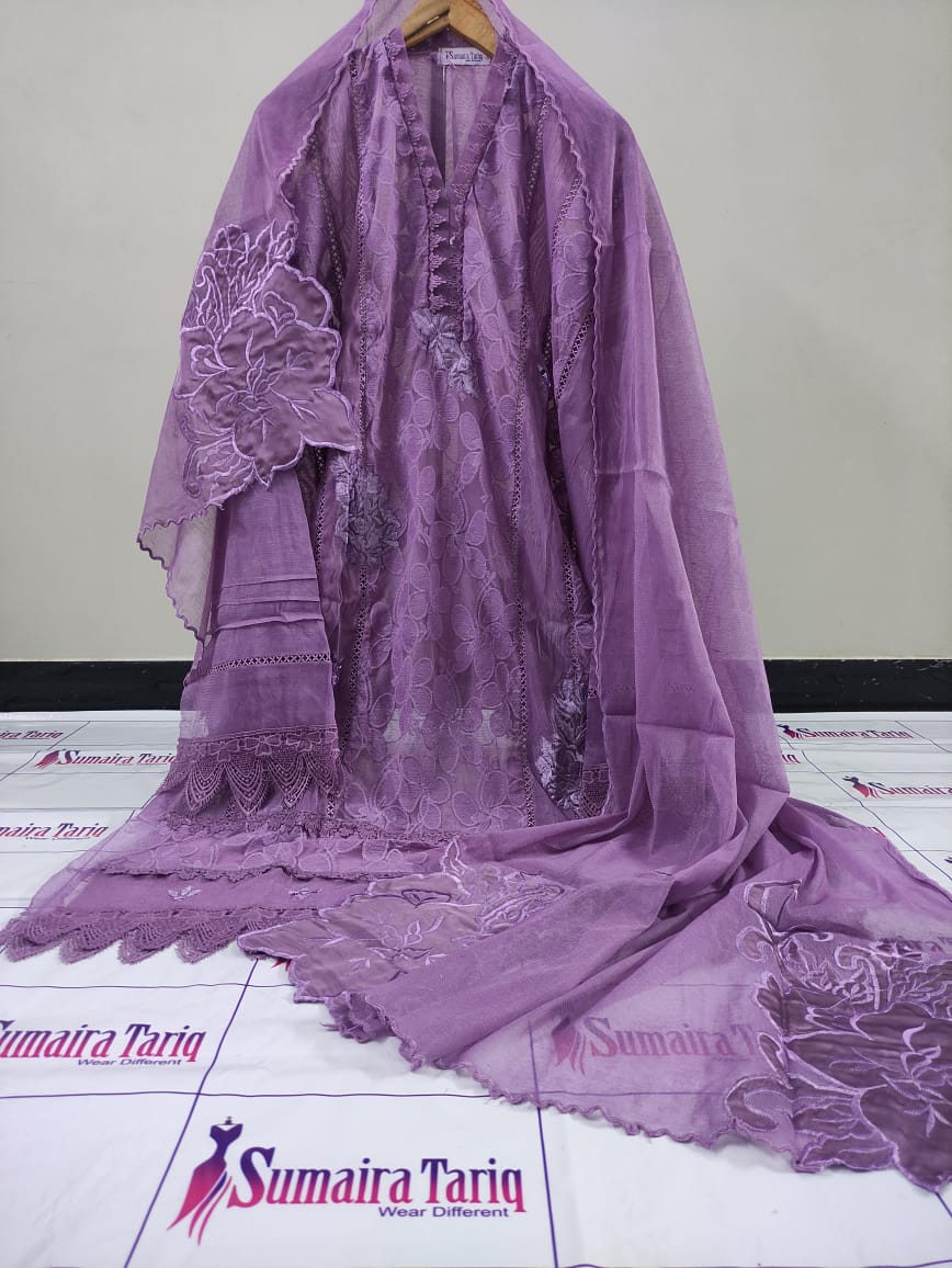 Harir Silk Applic Collection – 3 Piece Semi-Stitched Suit Elevate your wardrobe with the Harir Silk Applic Collection, a timeless blend of elegance and premium craftsmanship. Perfect for any occasion, this semi-stitched 3-piece suit is designed with versatility in mind, allowing you to tailor it to your size (S–XXL). Package Includes: Shirt: khadi net stuff Semi-stitched, 48″ length with 28″ chest (can be adjusted upon stitching) Trouser: Premium Pakistani Raw Silk (Unstitched) Dupatta: Khadi Net, 2.75 yards Price: Rs. 5,500 Delivery Charges: Rs. 300 (Nationwide) ✨ Additional Features: Cash on Delivery available across Pakistan Worldwide shipping facility Wholesale & stitching services on request 📲 For orders & inquiries: 0321-2533733 🌐 Shop online: www.purple-patch.com.pk