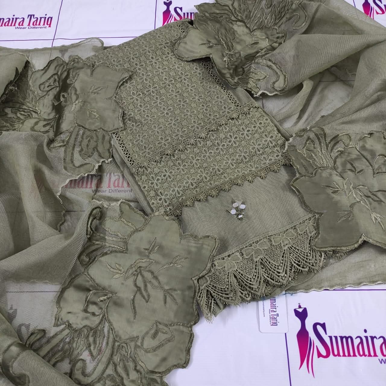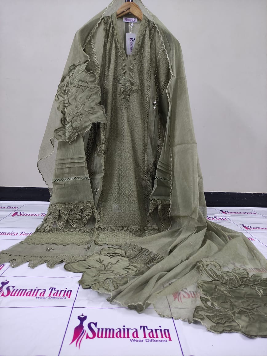 Harir Silk Applic Collection – 3 Piece Semi-Stitched Suit Elevate your wardrobe with the Harir Silk Applic Collection, a timeless blend of elegance and premium craftsmanship. Perfect for any occasion, this semi-stitched 3-piece suit is designed with versatility in mind, allowing you to tailor it to your size (S–XXL). Package Includes: Shirt: khadi net stuff Semi-stitched, 48″ length with 28″ chest (can be adjusted upon stitching) Trouser: Premium Pakistani Raw Silk (Unstitched) Dupatta: Khadi Net, 2.75 yards Price: Rs. 5,500 Delivery Charges: Rs. 300 (Nationwide) ✨ Additional Features: Cash on Delivery available across Pakistan Worldwide shipping facility Wholesale & stitching services on request 📲 For orders & inquiries: 0321-2533733 🌐 Shop online: www.purple-patch.com.pk