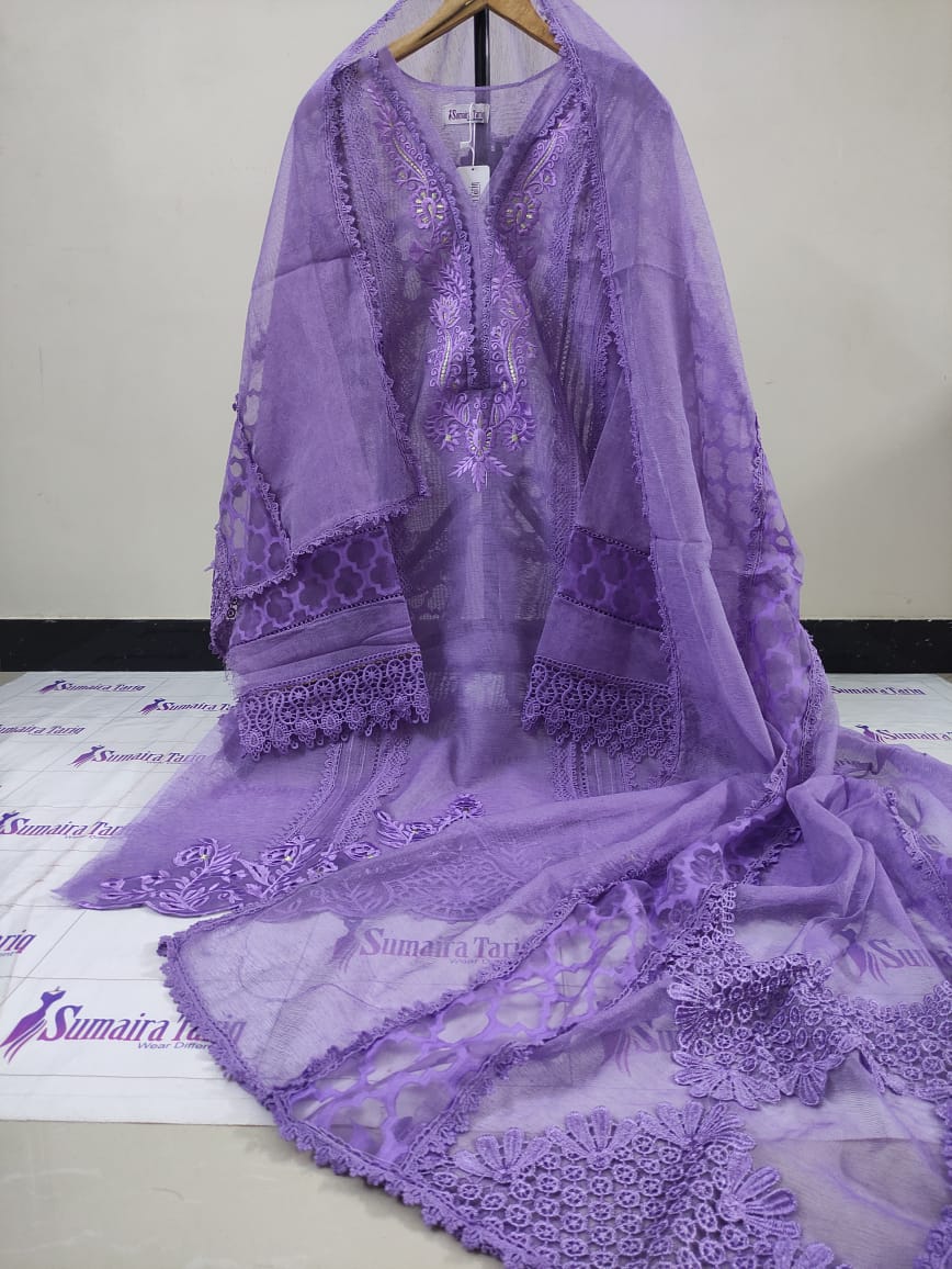 Experience timeless elegance with our Naqsh-e-Kamal Collection, featuring Daman cut work and delicate embroidery for a sophisticated, graceful look. Perfect for festive gatherings, formal dinners, or special occasions. ✨ Product Highlights: Type: Embroidered 2-Piece (Shirt + Dupatta) Fabric: Premium Khaddi Net with intricate embroidery & laser cut work Dupatta: 2.75 yards Khaddi Net with borders, embroidery & delicate lacing Shirt Length: 47″ (Standard Width) Colors: Available in 10 stunning shades Price: Rs. 5,000/- Delivery: Rs. 300/- all over Pakistan COD: Available nationwide International Shipping: Yes 🌍 📦 How to Order: 📞 Call / WhatsApp: 0321-2533733 🌐 Order Online: www.purple-patch.com.pk 💖 Style Tip: Pair with straight trousers or culottes for a modern, chic vibe.Out of stock