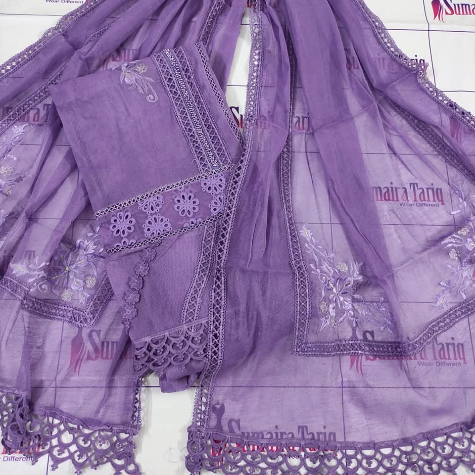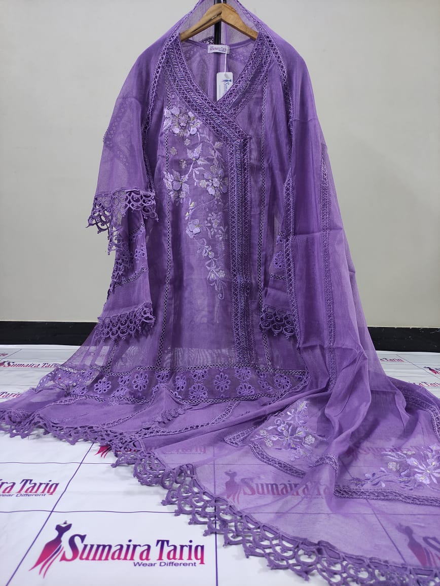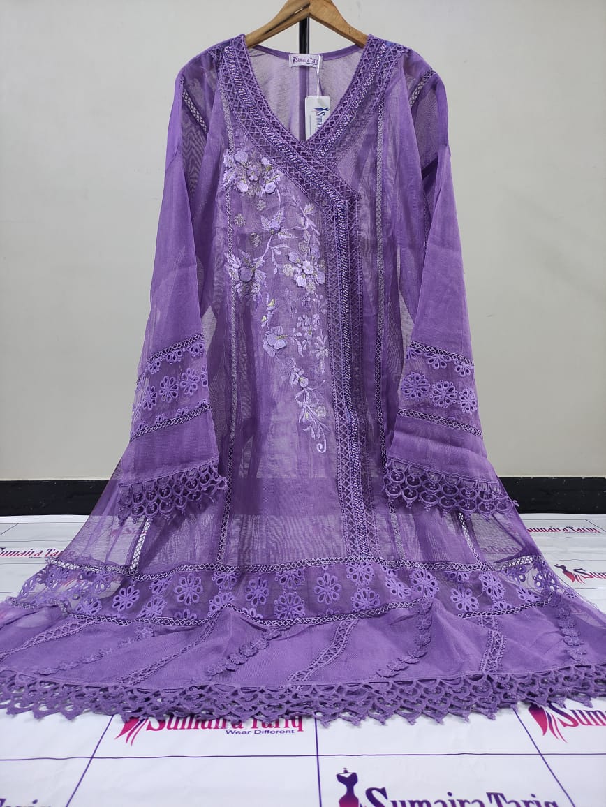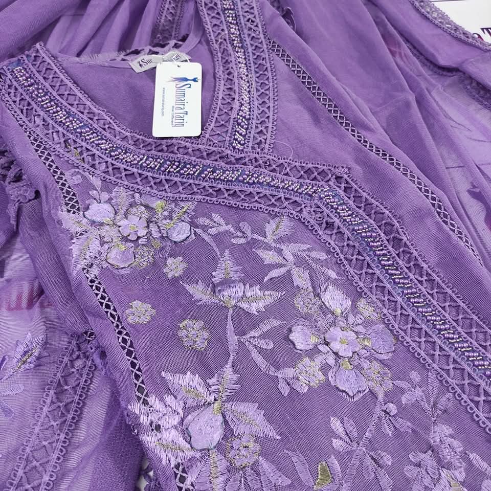 ✨ Nazneen Collection – New Arrivals ✨ Elevate your wardrobe with our Nazneen Collection, a perfect blend of traditional charm and modern sophistication. Our Angarkha A-line semi-stitched shirt is crafted from premium Khaadi Net fabric, adorned with: 💖 Exquisite lacing work 🌼 3D floral embellishments & delicate embroidery 🌸 Elegant Chickenkari border Product Details: Price: Rs. 6000 Available Colors: 10 beautiful shades Set Includes: Shirt | Dupatta | Trouser Dupatta: Khaadi Net (2.75 yards) Trouser: Raw Silk (Unstitched) Shirt Length: 50” | Width: 35” (fits S–XXL) Cash on Delivery: Rs. 300 all over Pakistan 🇵🇰 International Shipping Available 🌍 Indulge in timeless grace and impeccable craftsmanship with Nazneen — where every detail speaks elegance. 📞 For Orders: 0321-2533733 🌐 Shop Now: www.purple-patch.com.pk