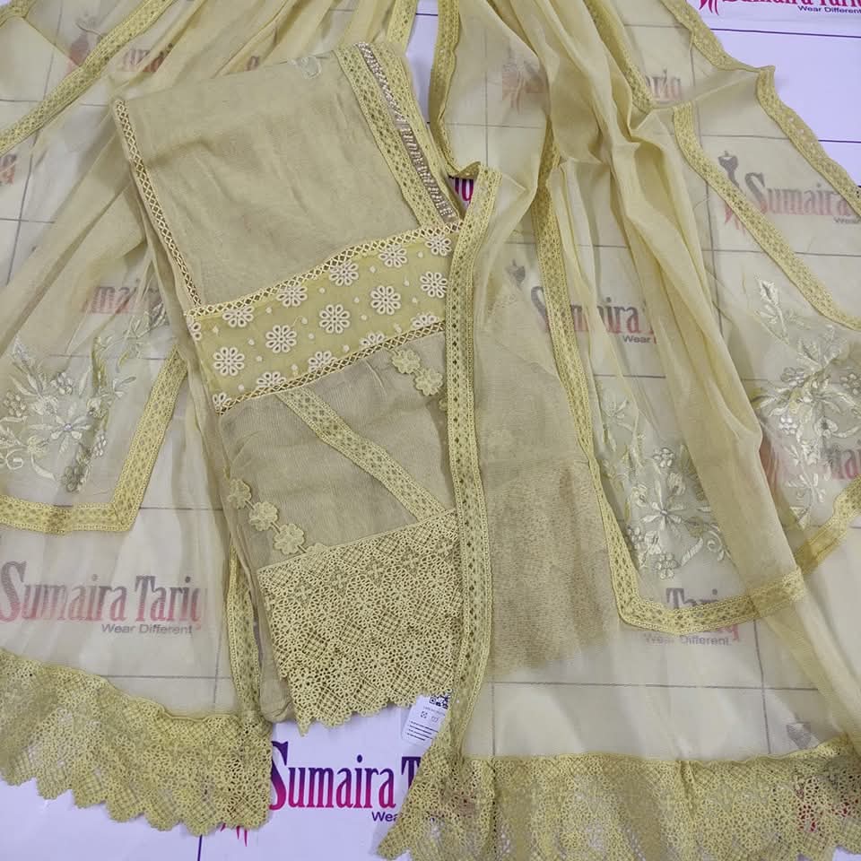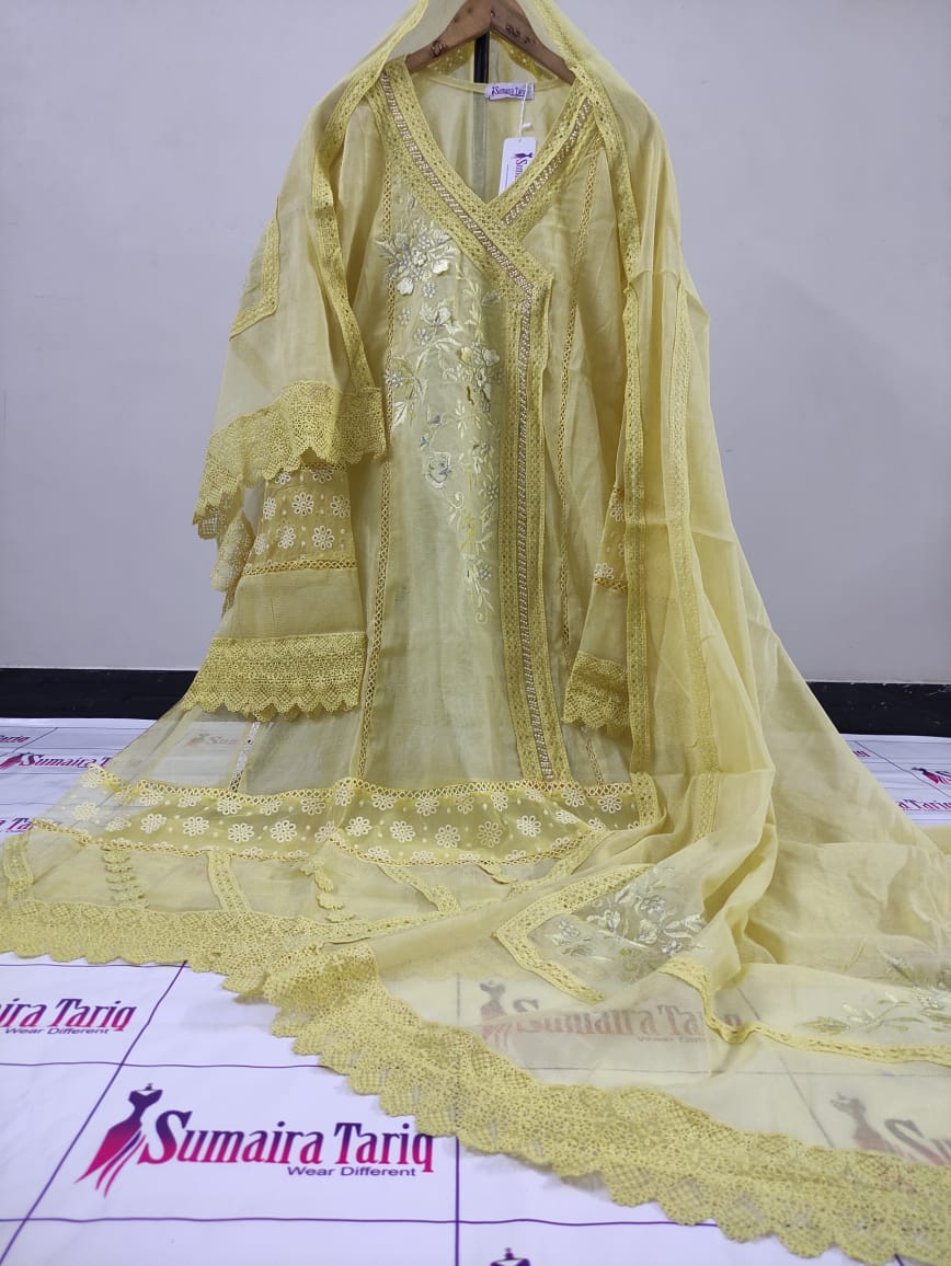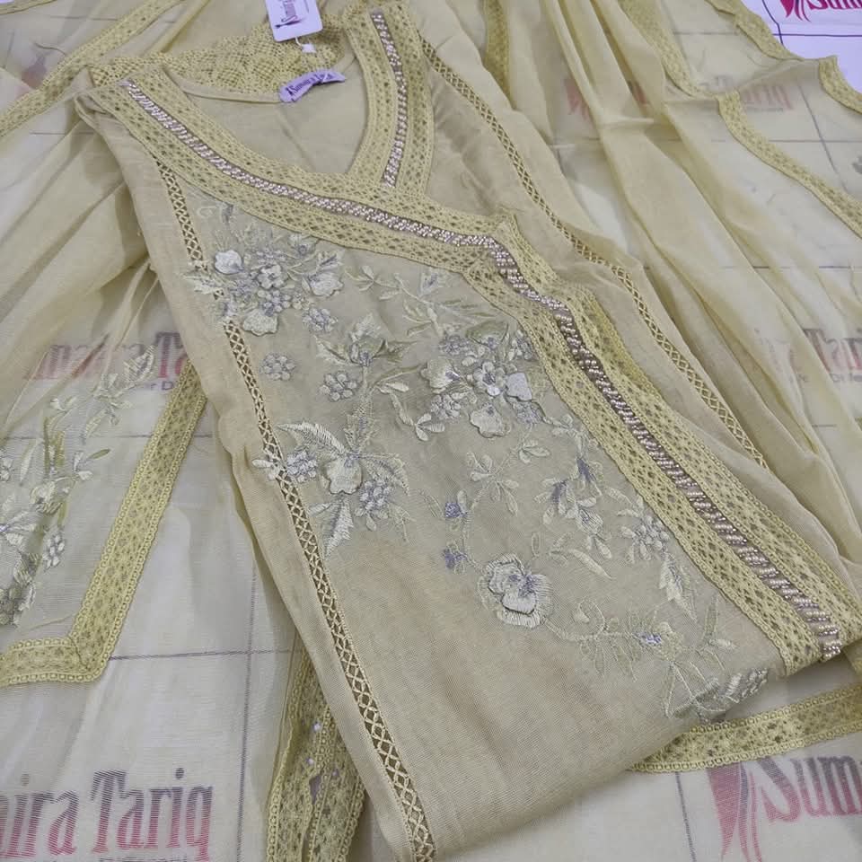 ✨ Nazneen Collection – New Arrivals ✨ Elevate your wardrobe with our Nazneen Collection, a perfect blend of traditional charm and modern sophistication. Our Angarkha A-line semi-stitched shirt is crafted from premium Khaadi Net fabric, adorned with: 💖 Exquisite lacing work 🌼 3D floral embellishments & delicate embroidery 🌸 Elegant Chickenkari border Product Details: Price: Rs. 6000 Available Colors: 10 beautiful shades Set Includes: Shirt | Dupatta | Trouser Dupatta: Khaadi Net (2.75 yards) Trouser: Raw Silk (Unstitched) Shirt Length: 50” | Width: 35” (fits S–XXL) Cash on Delivery: Rs. 300 all over Pakistan 🇵🇰 International Shipping Available 🌍 Indulge in timeless grace and impeccable craftsmanship with Nazneen — where every detail speaks elegance. 📞 For Orders: 0321-2533733 🌐 Shop Now: www.purple-patch.com.pk