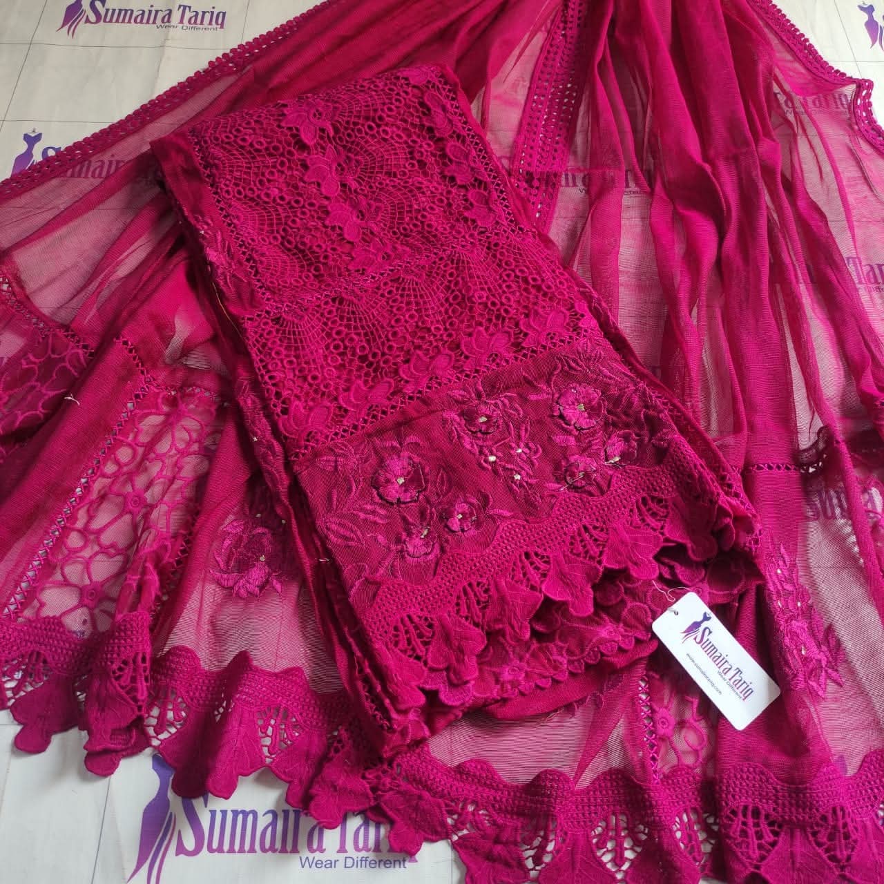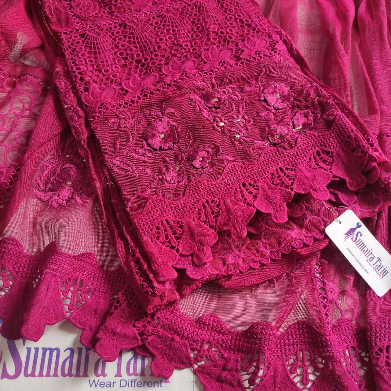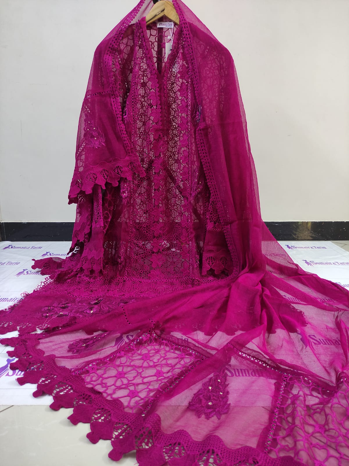 🌸 Khunki Collection – 3-Piece Semi-Stitched Suit 🌸 Experience timeless elegance with our most-demanded Khunki Collection. Crafted from premium Khadi Net fabric, this suit is designed with exquisite details that bring together tradition and modern charm. Product Details: Shirt (Semi-Stitched): Stitchable from Small → XXL Qureshia embroidered front Soft embroidered back Elegant 3D embroidery with lace finishing Length: 45” | Chest: 28” Dupatta (2.5 yards): Khadi net fabric Intricately embroidered on both sides with Qureshia Trouser (Unstitched): Premium raw silk   Price & Shipping: Price: Rs. 5,500 Delivery Charges: Rs. 300 (Flat rate across Pakistan) Worldwide Shipping Available Cash on Delivery (COD) across Pakistan Wholesale options available 📞 For Orders: 03212533733 🌐 Shop Online: www.purple-patch.com.pk ✨ Elevate your wardrobe with the elegance of Khunki Collection! ✨
