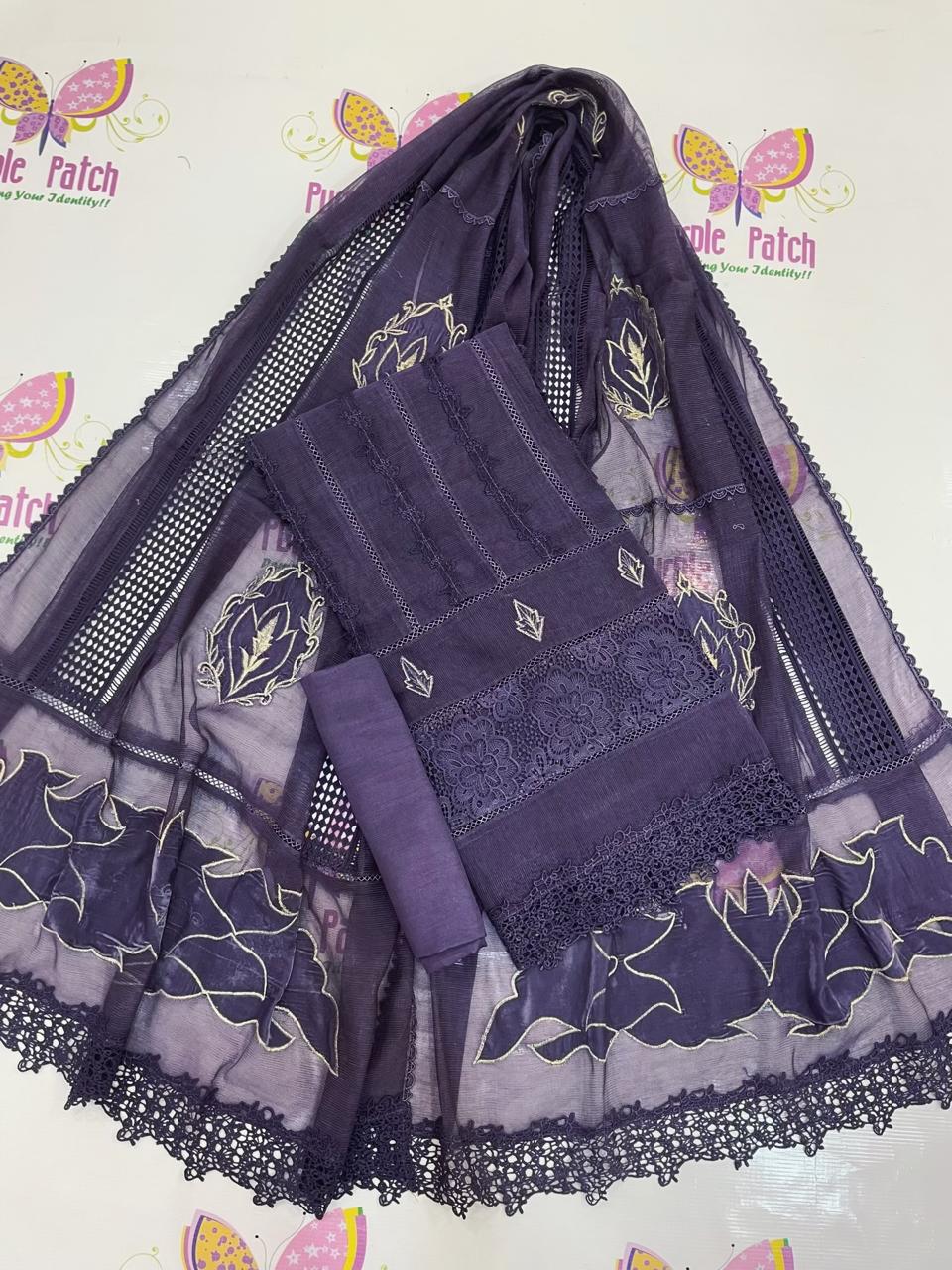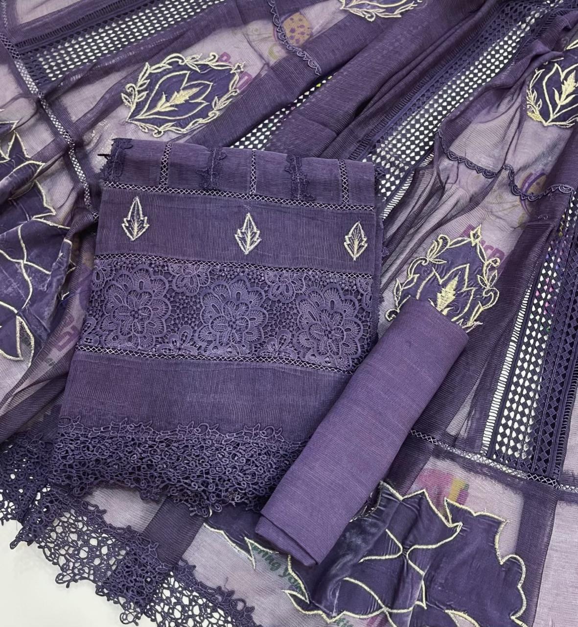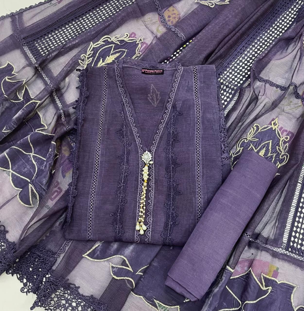 Celebrate this Eid in timeless elegance with our exclusive Makhmal Collection. Designed for the modern woman who values both style and comfort, this 3-piece semi-stitched outfit blends the softness of Khadi Net with the richness of velvet accents.