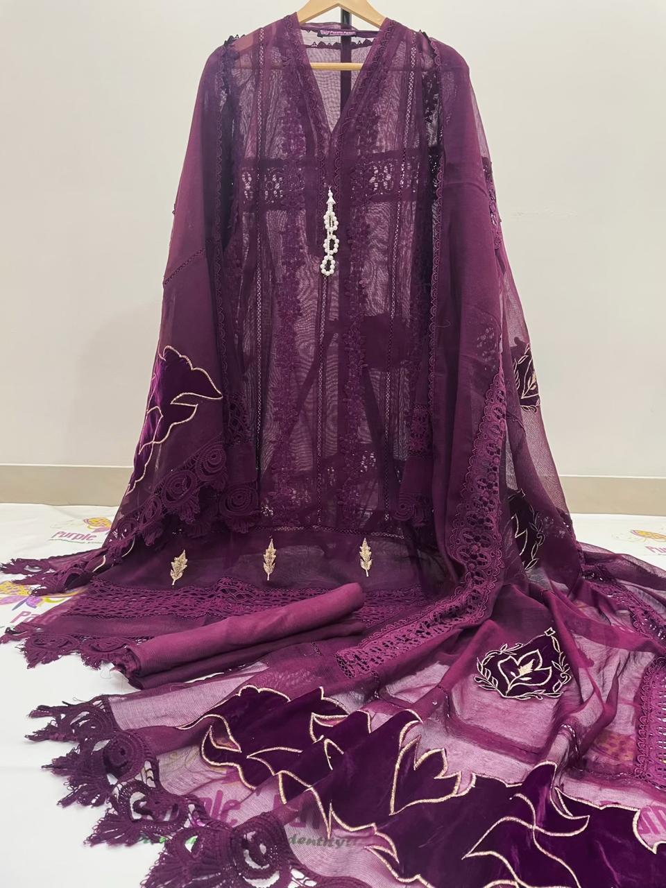 Step into timeless elegance this Eid with our Makhmal Collection, where luxury meets effortless comfort. Designed for women who appreciate fine craftsmanship, this ensemble blends rich textures with intricate detailing for a truly graceful look.