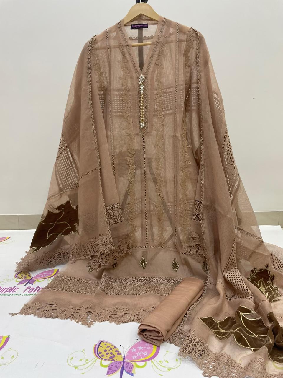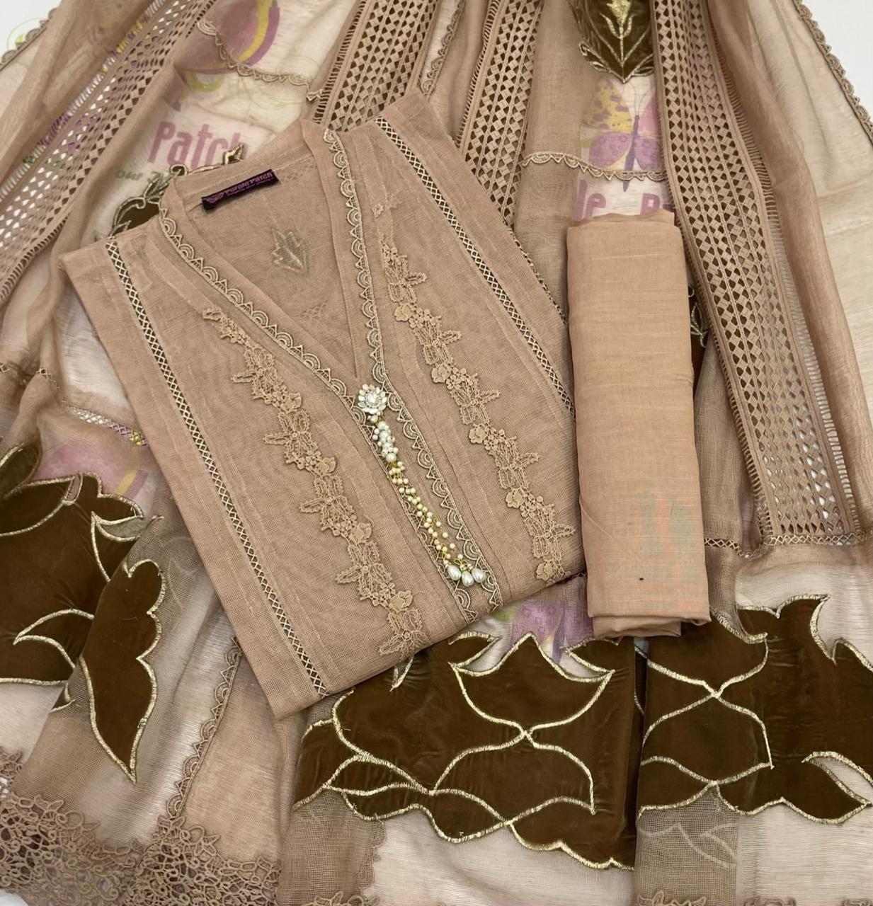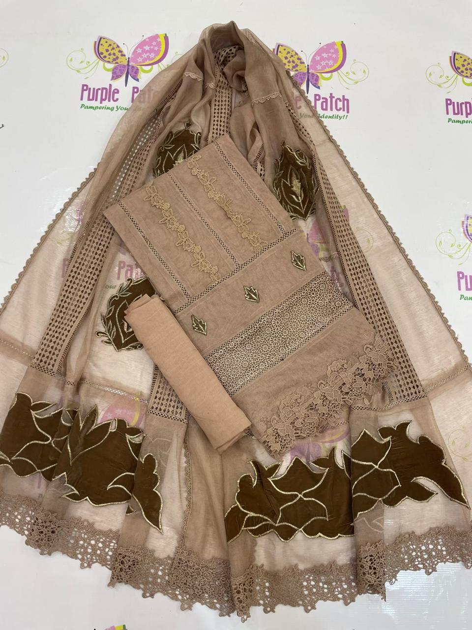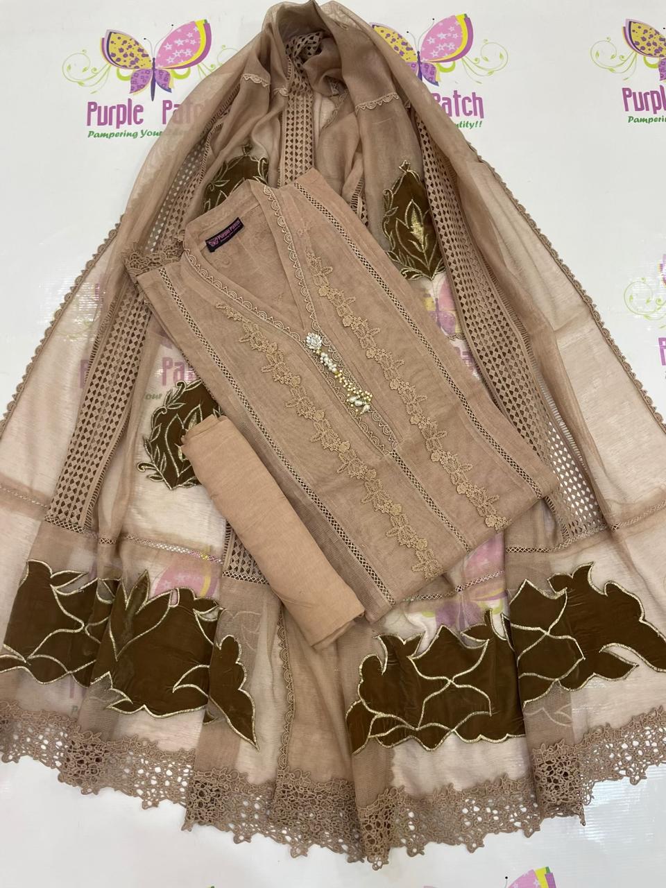 Celebrate this Eid in timeless elegance with our exclusive Makhmal Collection. Designed for the modern woman who values both style and comfort, this 3-piece semi-stitched outfit blends the softness of Khadi Net with the richness of velvet accents.