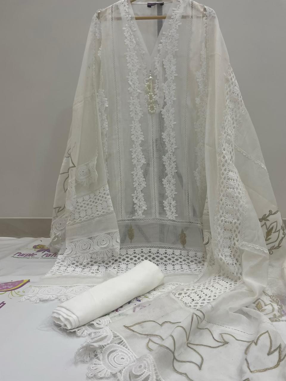 ✨ Makhmal Collection – Eid Festive Wear ✨ Step into timeless elegance this Eid with our Makhmal Collection, where luxury meets effortless comfort. Designed for women who appreciate fine craftsmanship, this ensemble blends rich textures with intricate detailing for a truly graceful look. The shirt and dupatta are crafted from ethereal Khadi Net, enhanced with plush velvet appliqué, shimmering tilla work, and delicate lace accents. Paired with a raw silk trouser, the outfit offers a perfect balance of sophistication and wearability. A complimentary tassel hanging adds a charming finishing touch. Product Details: Fabric: Khadi Net with Velvet Work: Velvet appliqué with tilla & delicate laces Shirt & Dupatta: Khadi Net Trouser: Raw Silk Length: 45+ inches Colors: Available in 9 stunning shades Style: 3-Piece Semi-Stitched Size: Can be tailored from S to XXL Extra: Complimentary tassel hanging Perfect for Eid gatherings and festive occasions, the Makhmal Collection promises an elegant statement with every wear.