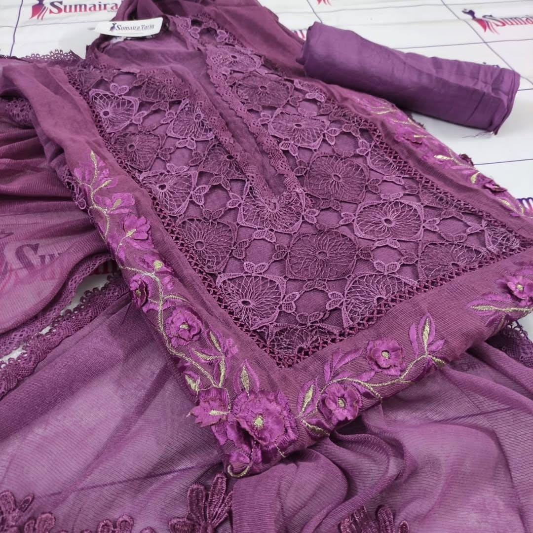 🌸 3D Korshia Collection – Elegance Meets Craftsmanship 💫 Experience timeless beauty with our 3D Korshia Collection, featuring exquisite 3-piece semi-stitched suits crafted from premium Khadi net fabric. Each design showcases luxurious 3D embroidery and delicate Qureshia net detailing, blending traditional artistry with modern elegance. Perfect for festive gatherings, formal events, or special occasions — this outfit can be tailored from size S to XXL to ensure a flawless fit for every style. Product Details: Fabric: Premium Khadi Net Dupatta: 2.75m Khadi Net (Ready to Wear) Shirt Length: 45″+ Price: PKR 5,500 Delivery: PKR 300 Nationwide Wholesale: Available on bulk orders ✨ Redefine elegance with every thread — order your 3D Korshia suit today! 📞 Order Now: 0321-2522733 🌐 Shop Online: www.purple-patch.com.pk