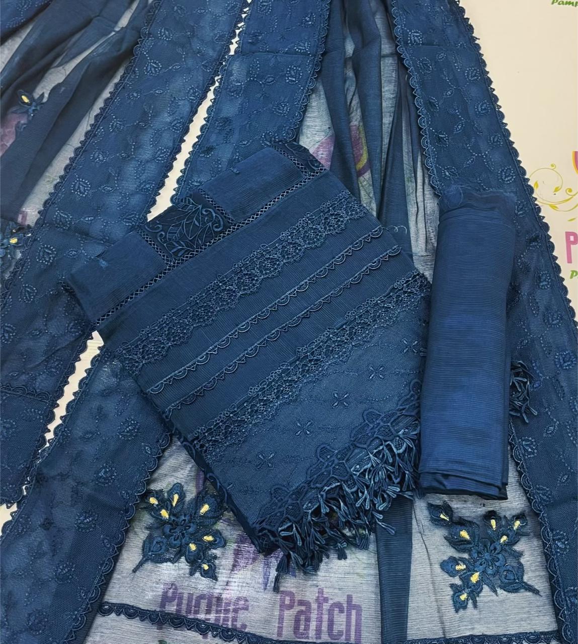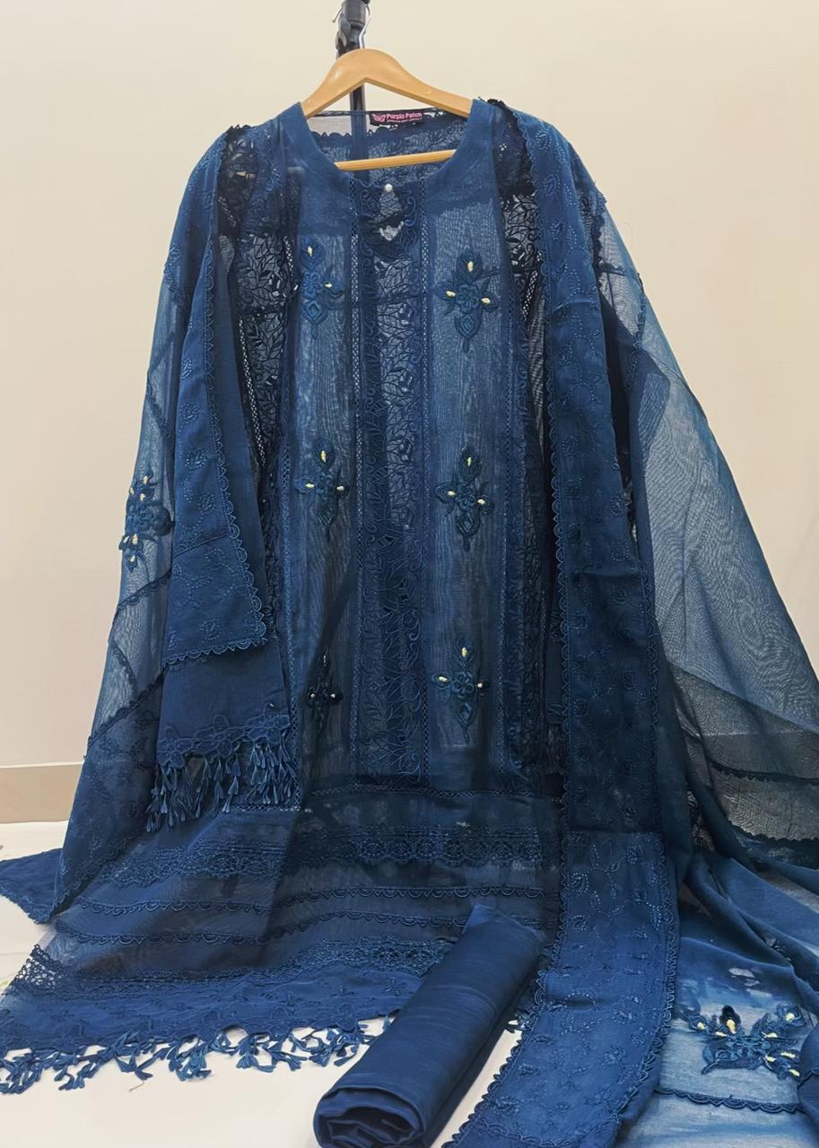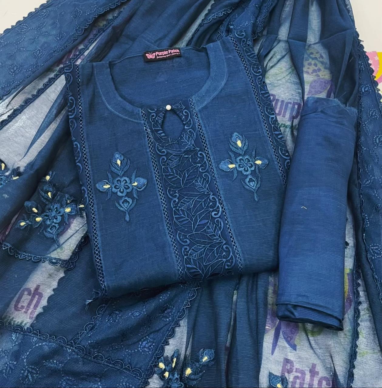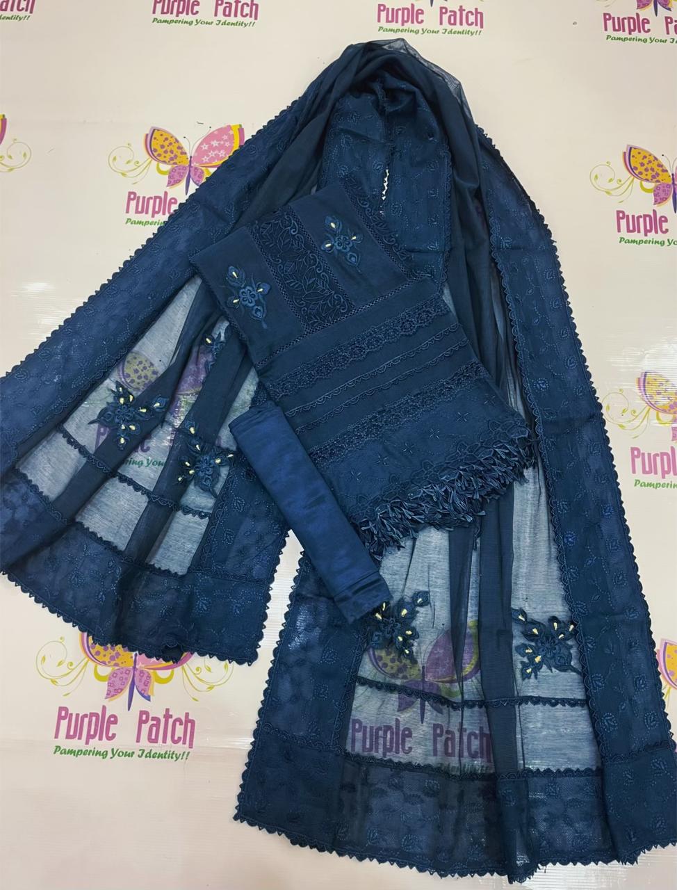 Make your Eid look graceful and elegant with our premium 3 Piece Semi-Stitched Khadi Cotton Net Suit from the Mushq Collection. Designed for summer and all seasons, this outfit features fine cutwork with 3D embroidery and tilla work, giving it a luxurious festive feel. Perfect for Eid, family gatherings, and special occasions.
