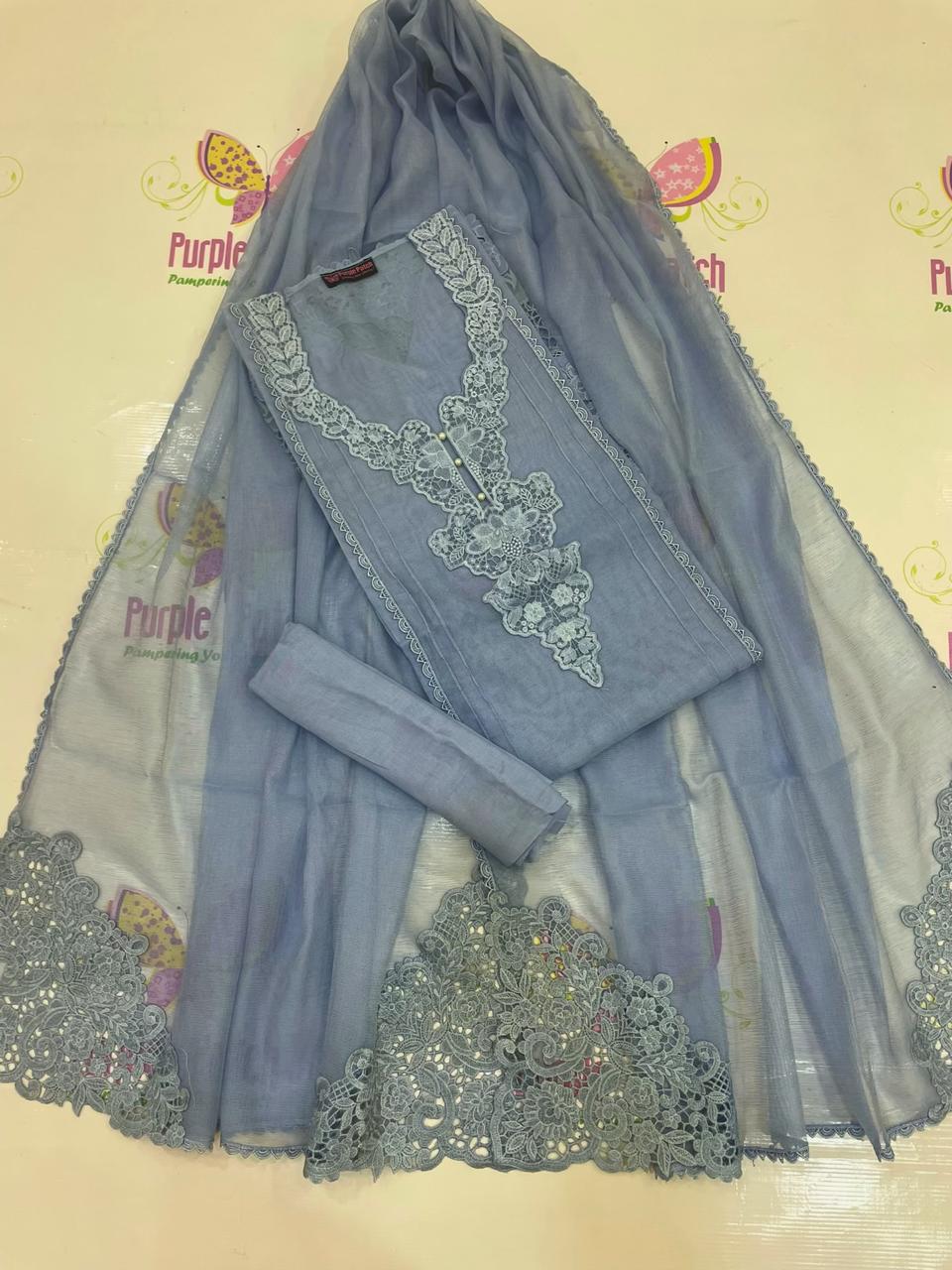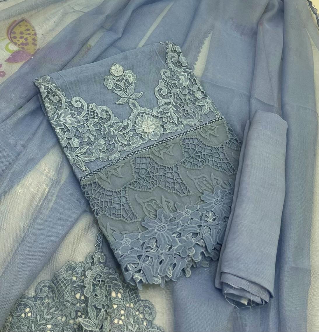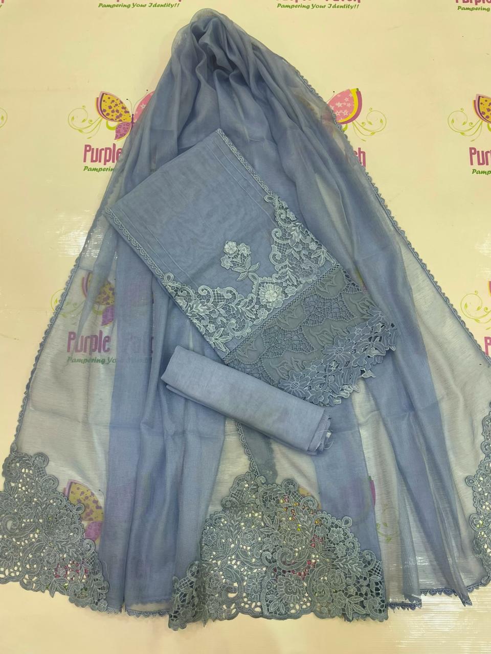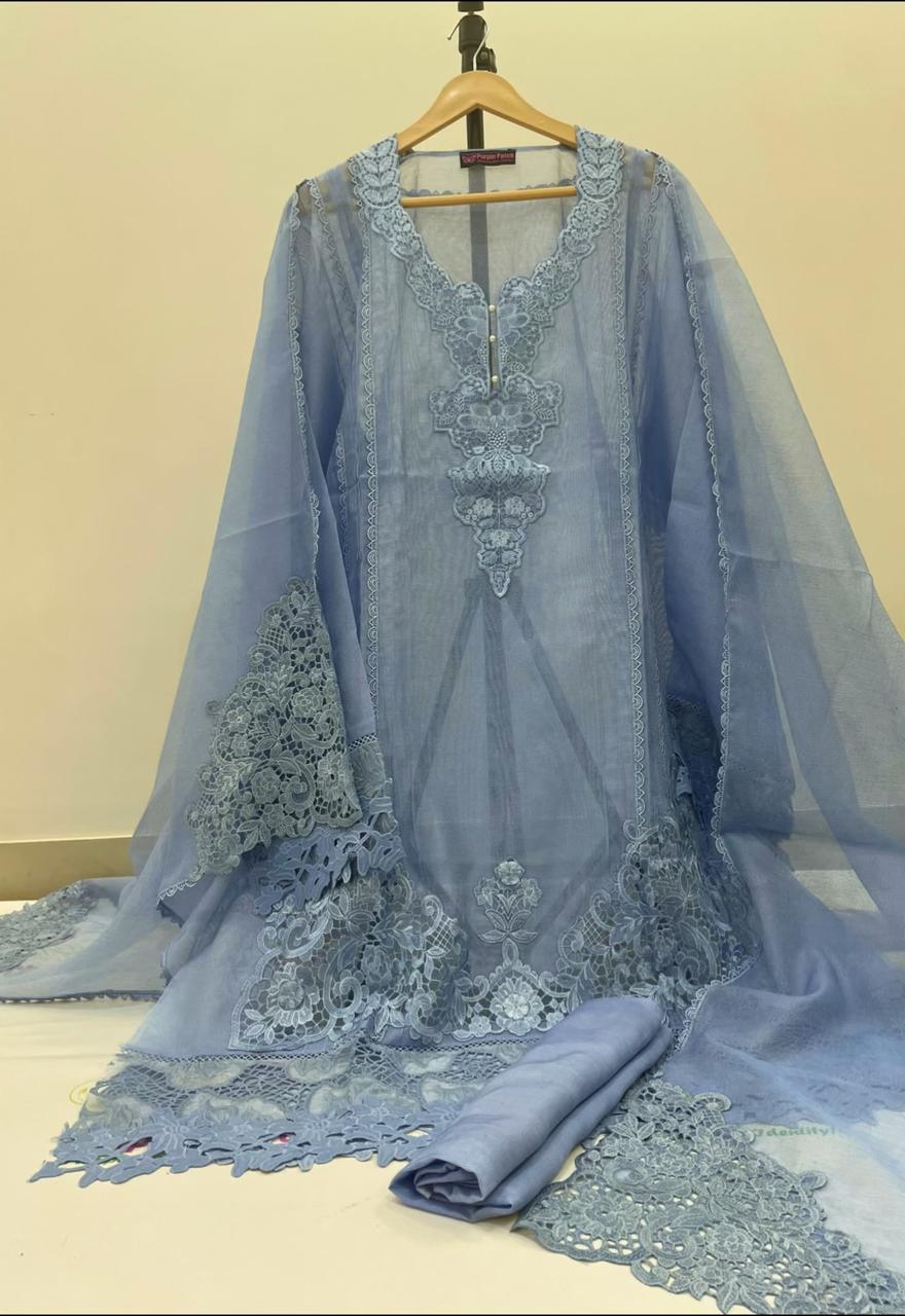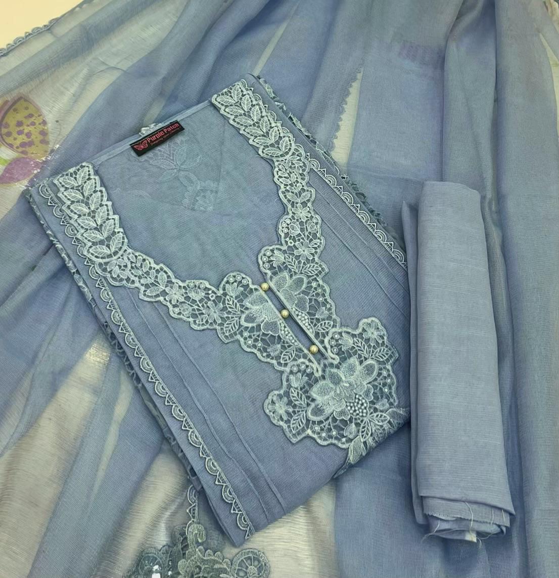Noor-e-Khaas — Eid Collection Celebrate this Eid with timeless elegance through our Noor-e-Khaas 3 Piece Semi-Stitched Khadi Cotton Net Collection, crafted for women who love grace, comfort, and sophistication. Designed with delicate embroidery and refined cutwork detailing, this ensemble perfectly blends festive charm with modern styling. The breathable Khadi Cotton Net fabric ensures comfort while maintaining a luxurious festive look, making it an ideal choice for Eid gatherings and special occasions. Fabric Details Shirt: Khadi Cotton Net with Embroidery & Elegant Cutwork Dupatta: Khadi Cotton Net Trouser: Premium Raw Silk Product Highlights Semi-Stitched for Custom Tailoring Stitchable from Small to XXL Elegant Festive Design Perfect for Eid & Formal Wear Measurements Shirt Length: 45+ Inches Dupatta Length: 2.75 Meters Available in 10 stunning colours, Noor-e-Khaas allows you to create a personalized Eid look that reflects your style and elegance. ✨ Make this Eid unforgettable with sophistication and grace. Dry clean recomended