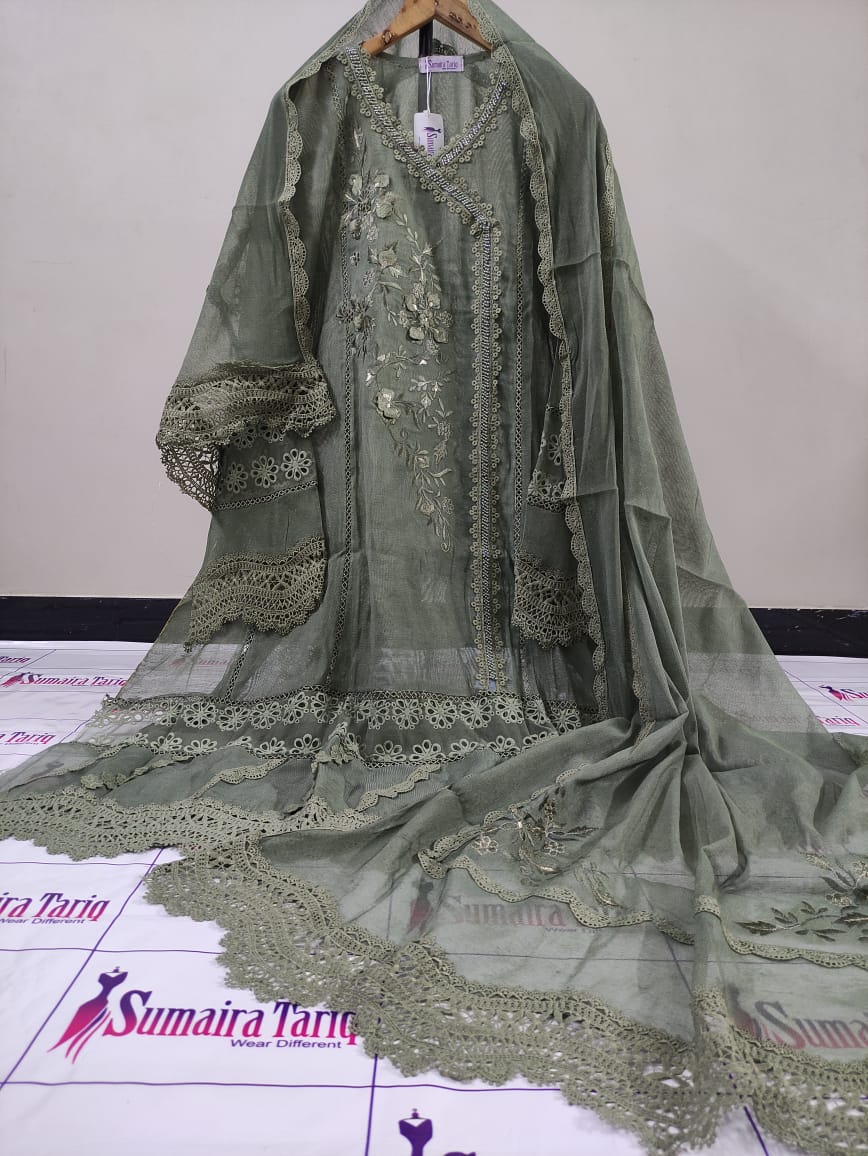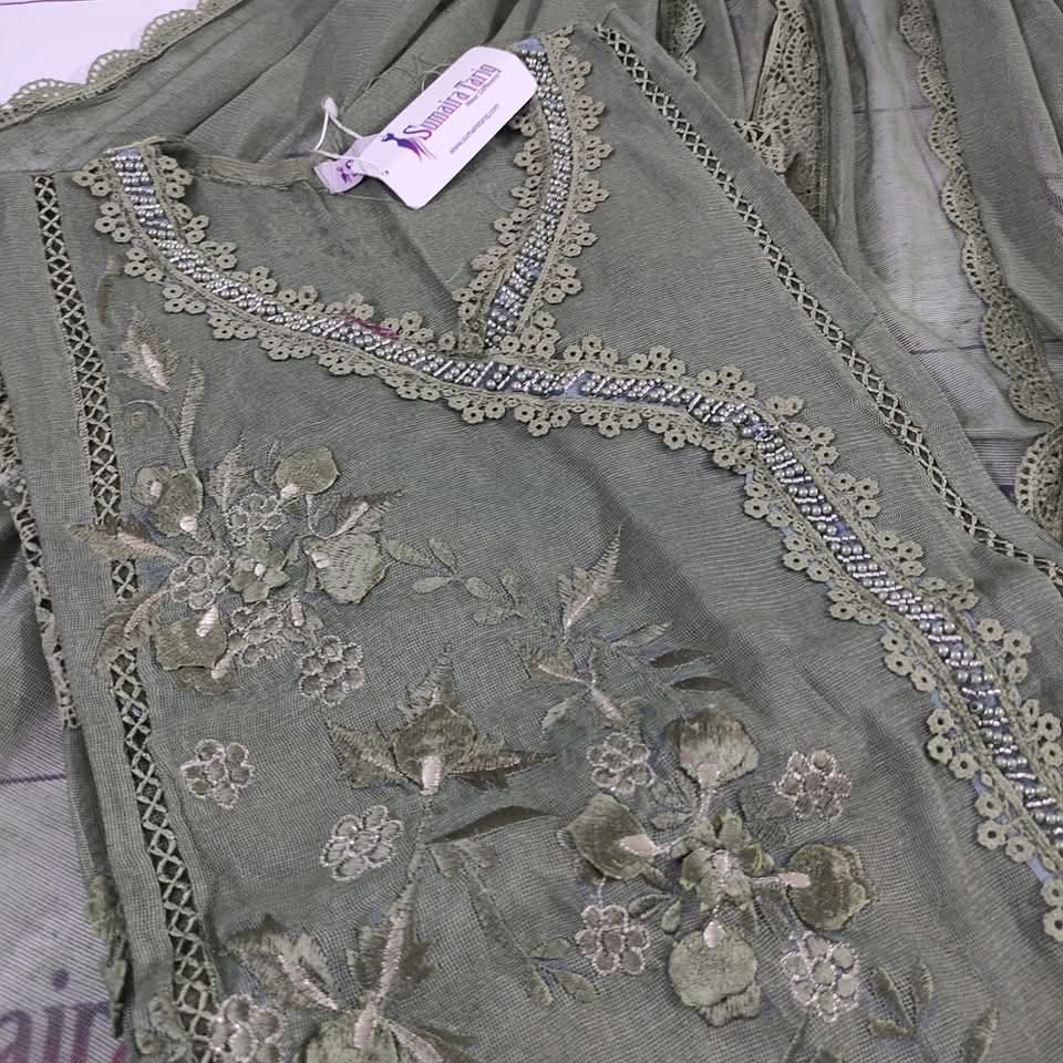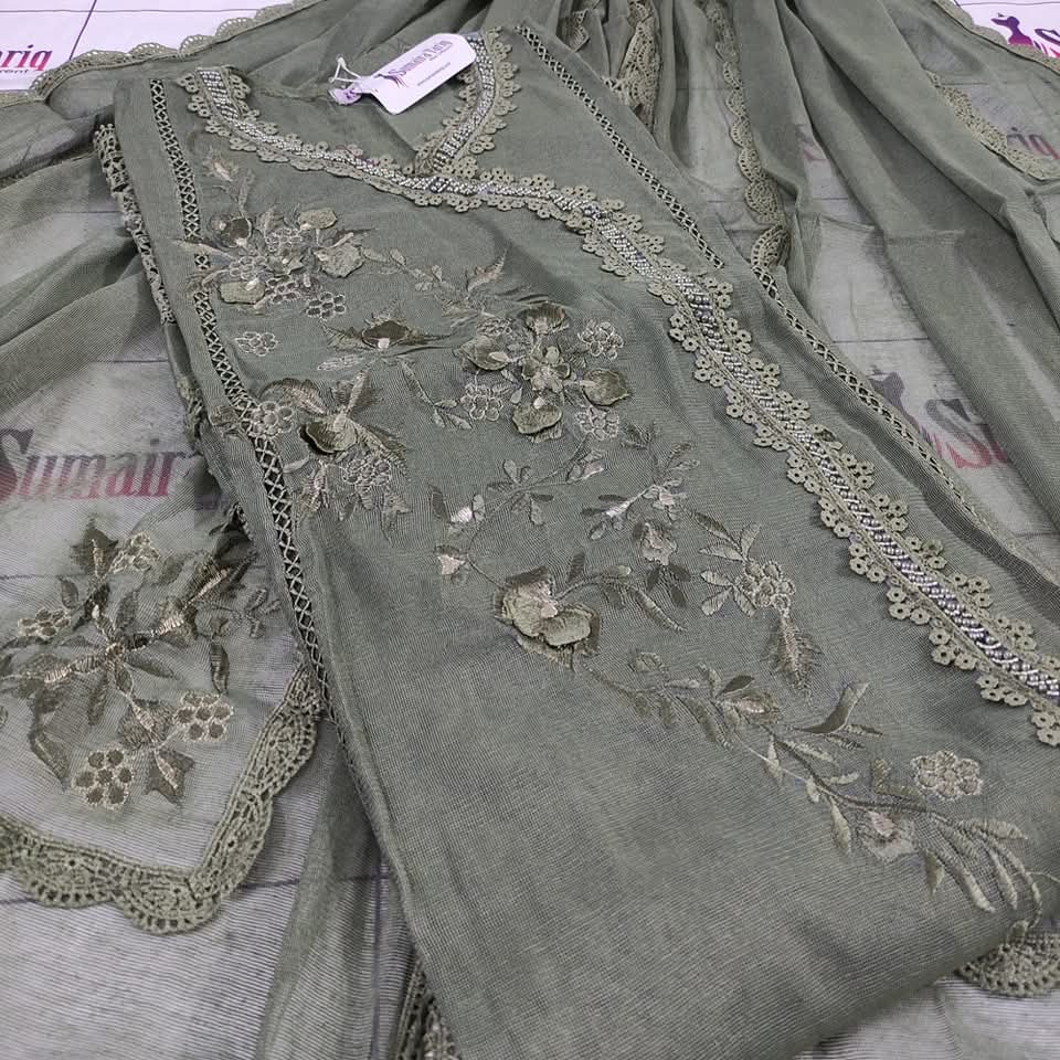 ✨ Nazneen Collection – New Arrivals ✨ Elevate your wardrobe with our Nazneen Collection, a perfect blend of traditional charm and modern sophistication. Our Angarkha A-line semi-stitched shirt is crafted from premium Khaadi Net fabric, adorned with: 💖 Exquisite lacing work 🌼 3D floral embellishments & delicate embroidery 🌸 Elegant Chickenkari border Product Details: Price: Rs. 6000 Available Colors: 10 beautiful shades Set Includes: Shirt | Dupatta | Trouser Dupatta: Khaadi Net (2.75 yards) Trouser: Raw Silk (Unstitched) Shirt Length: 50” | Width: 35” (fits S–XXL) Cash on Delivery: Rs. 300 all over Pakistan 🇵🇰 International Shipping Available 🌍 Indulge in timeless grace and impeccable craftsmanship with Nazneen — where every detail speaks elegance. 📞 For Orders: 0321-2533733 🌐 Shop Now: www.purple-patch.com.pk