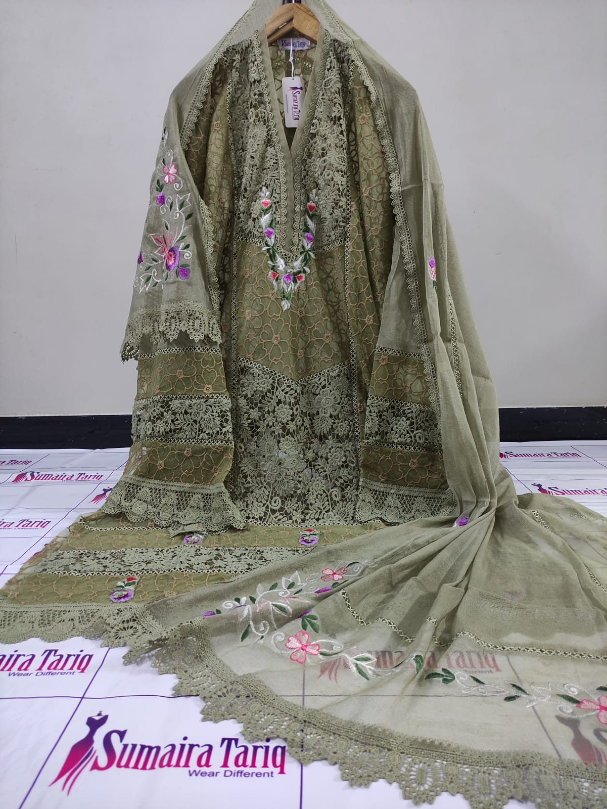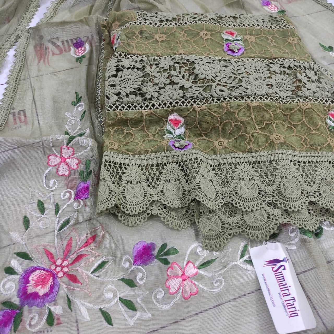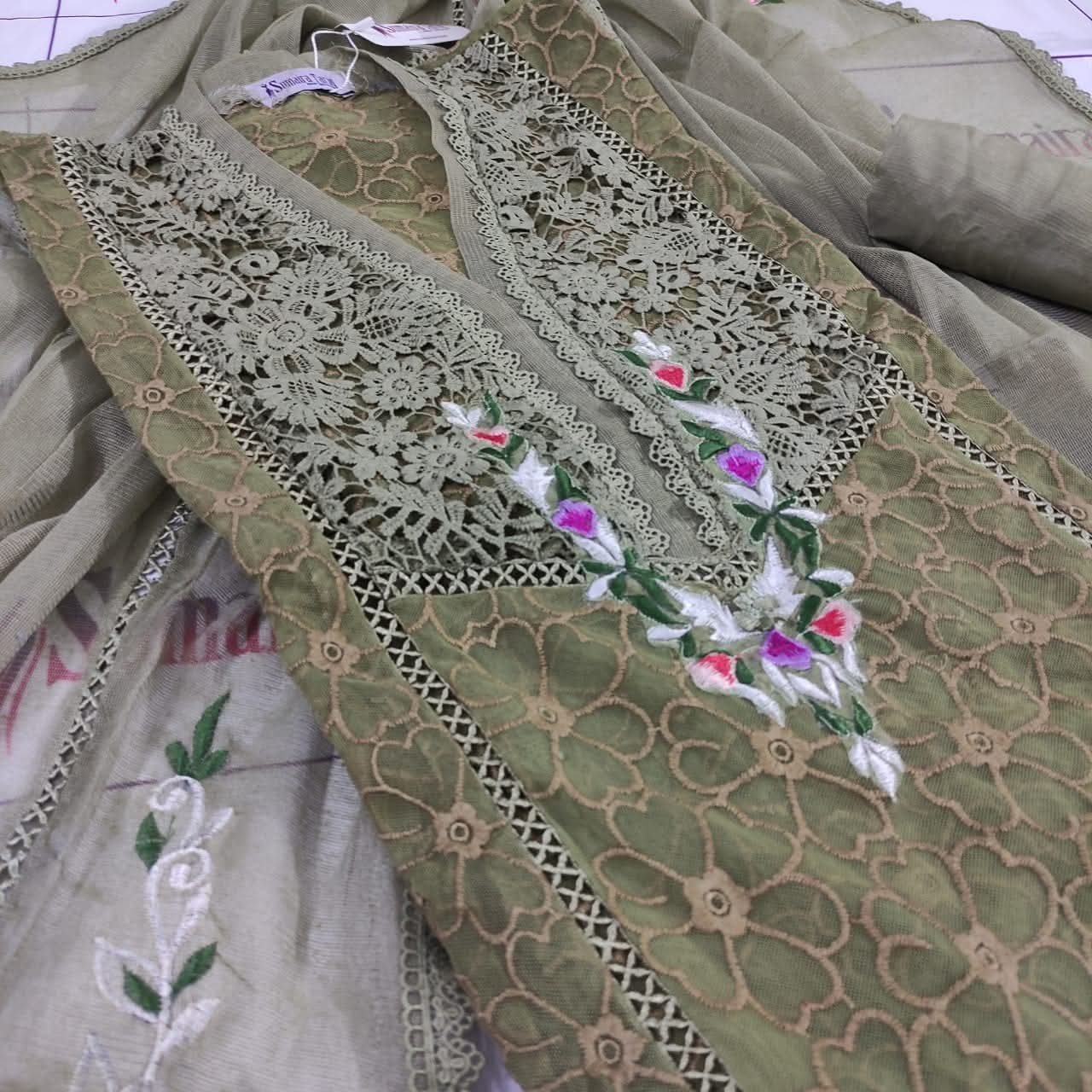 ✨ Qarsia Qureshia Collection – Winter Arrival ✨ Step into elegance this winter with our exclusive 3D Qureshia Semi-Stitched Khadi Net Suits. Designed to turn heads, this collection blends luxury, grace, and timeless craftsmanship — perfect for your winter festivities and special occasions. 💕 ✨ Product Details 🌸 Beautiful Panel & Qureshia Lacing on Daman – adds refined charm 🌸 4-Side Laced Dupatta with 3D Flowers & Heavy Embroidery – stunning and graceful 🌸 Premium Khadi Net Fabric – soft, warm, and perfect for winter wear 💎 Fabric Details: Shirt: Khadi Net (47” length, 28” width – fits S to XXL) Trouser: Raw Silk (Unstitched) Dupatta: Khadi Net (2.75 yards) 💫 Additional Details: Available in 10 Gorgeous Colors Includes: Shirt | Dupatta | Trouser Price: Rs. 6000 Delivery Charges: Rs. 300 (All Over Pakistan) Cash on Delivery Nationwide | International Shipping Available 📞 Order Now: 0321-25337733 🌐 Shop Online: www.purple-patch.com.pk 💫 Luxury, grace & craftsmanship – all in one outfit! 💫