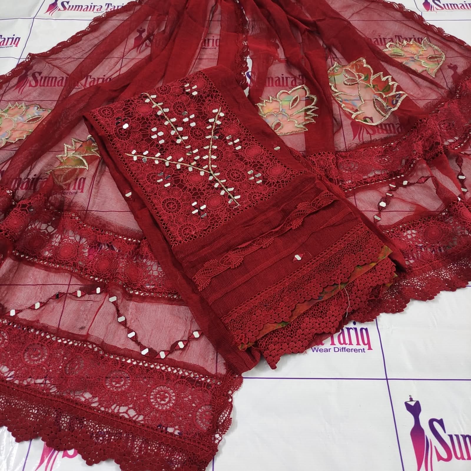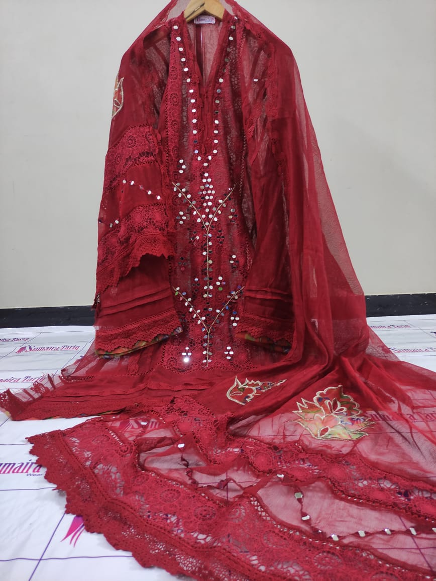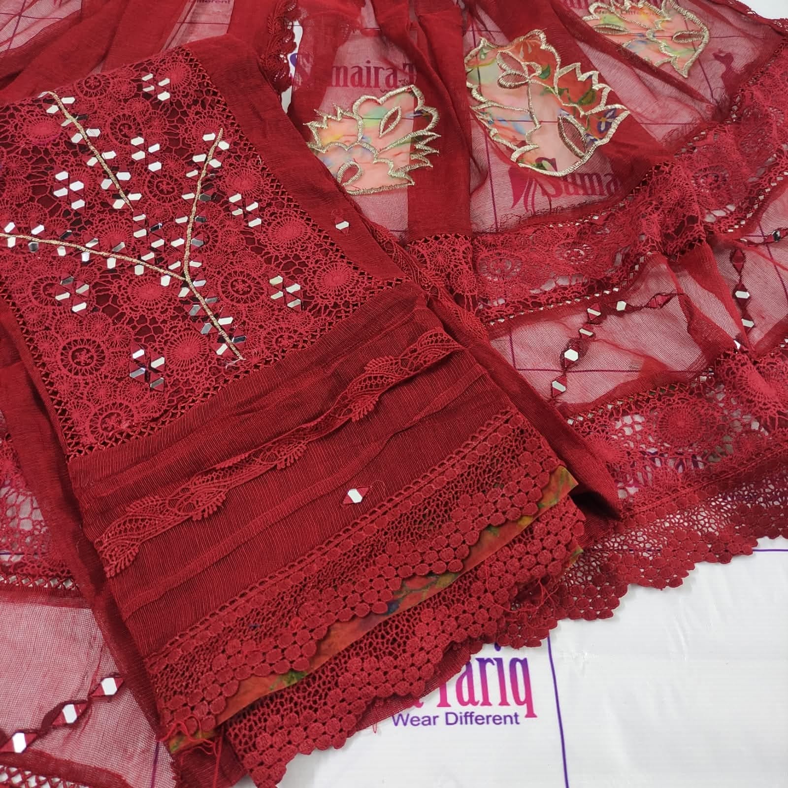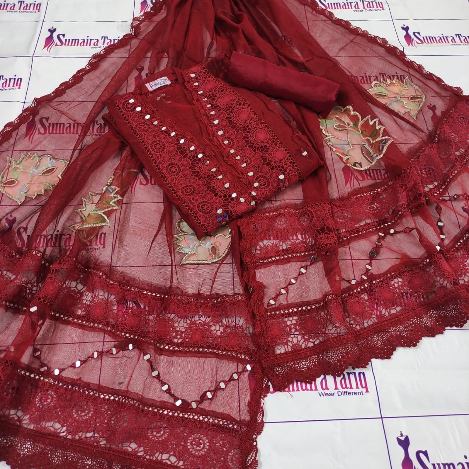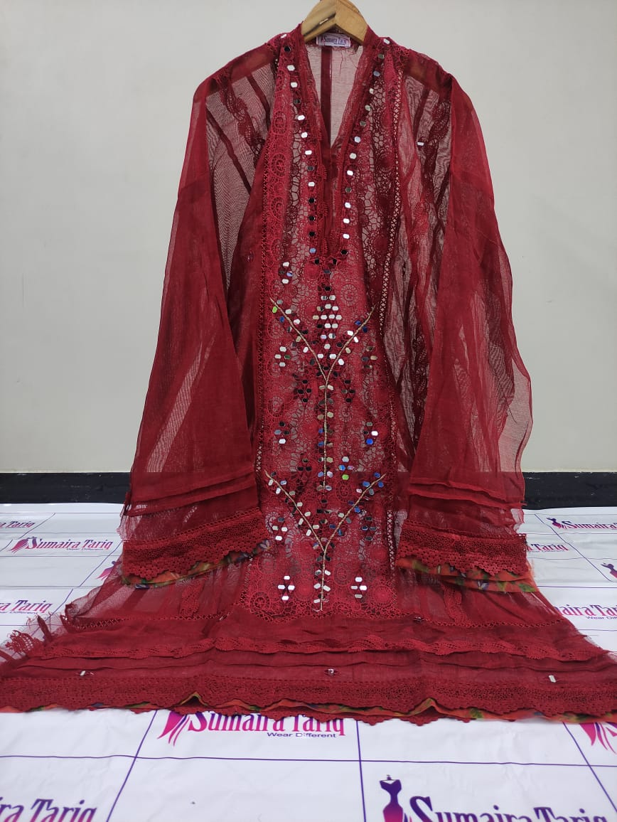 Flora Mirror Collection – Semi-Stitched 3-Piece Suit Elevate your wardrobe with the Flora Mirror Collection, a perfect blend of tradition and modern elegance. This 3-piece semi-stitched ensemble features delicate chikan kari panels with mirror work, paired with a graceful dupatta and premium trouser fabric — making it an ideal choice for festive gatherings, family events, or formal evenings. Product Details: Shirt: Semi-stitched (fits S to XXL), chikan kari panel with intricate mirror work Dupatta: Khadi net (2.75 yards) with floral appliqué & mirror detailing Trouser: Premium Pakistani raw silk (unstitched) Measurements: Shirt length 47″, width 28″ Available in: 10 elegant colors Price & Delivery: Price: PKR 5,500 Delivery Charges: PKR 300 (all over Pakistan) Cash on Delivery: Available nationwide International Shipping: Available ✨ A timeless outfit designed to bring sophistication and charm to your wardrobe. ✨ 📞 For orders & inquiries: 0321 2533733 🛒 Shop online: www.purple-patch.com.pk