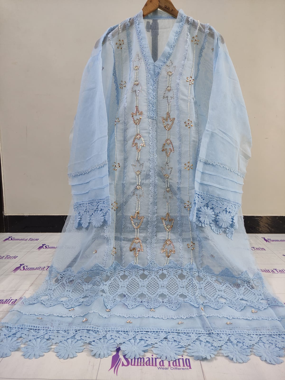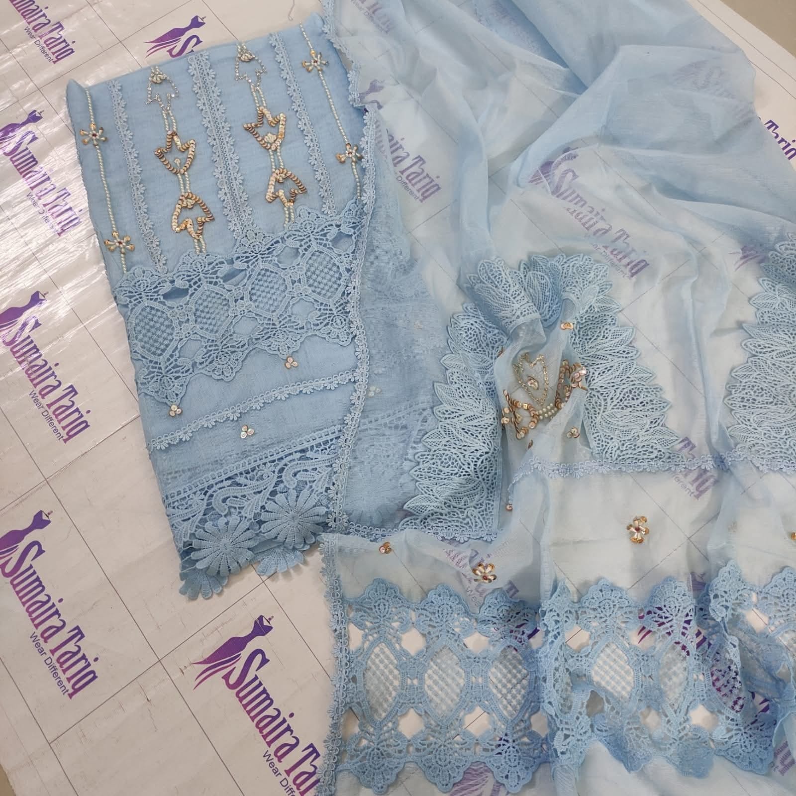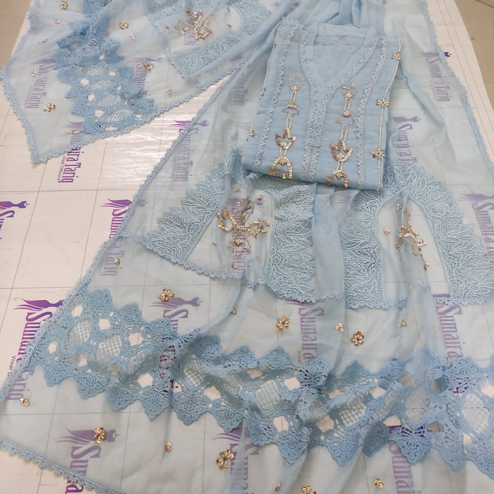 ✨ Aura Collection – Luxury Handwork Suit ✨ Discover timeless elegance with our Aura Collection, crafted on premium Khadi Net with exquisite hand embellishments of pearls, stones, and sequins. Finished with delicate lace detailing, this luxury ensemble brings sophistication at an unbeatable price. What’s Included: Unstitched Shirt – Semi-stitched with fine handwork Length: 42–45 inches Width: 28 inches Fits sizes S – XXL Ready-to-Wear Dupatta – 2.75 yards of elegance Key Features: Premium Khadi Net fabric Hand embellishment with pearls, stones & sequins Intricate lace finishing Semi-stitched shirt (customizable fit) Ready-to-wear dupatta Price: Rs. 5,500/- only Delivery Options: Cash on Delivery (All over Pakistan – Rs. 300) Worldwide Shipping available Wholesale Orders accepted ✨ Perfect for festive gatherings, weddings, and luxury soirées – redefine grace with the Aura Collection.