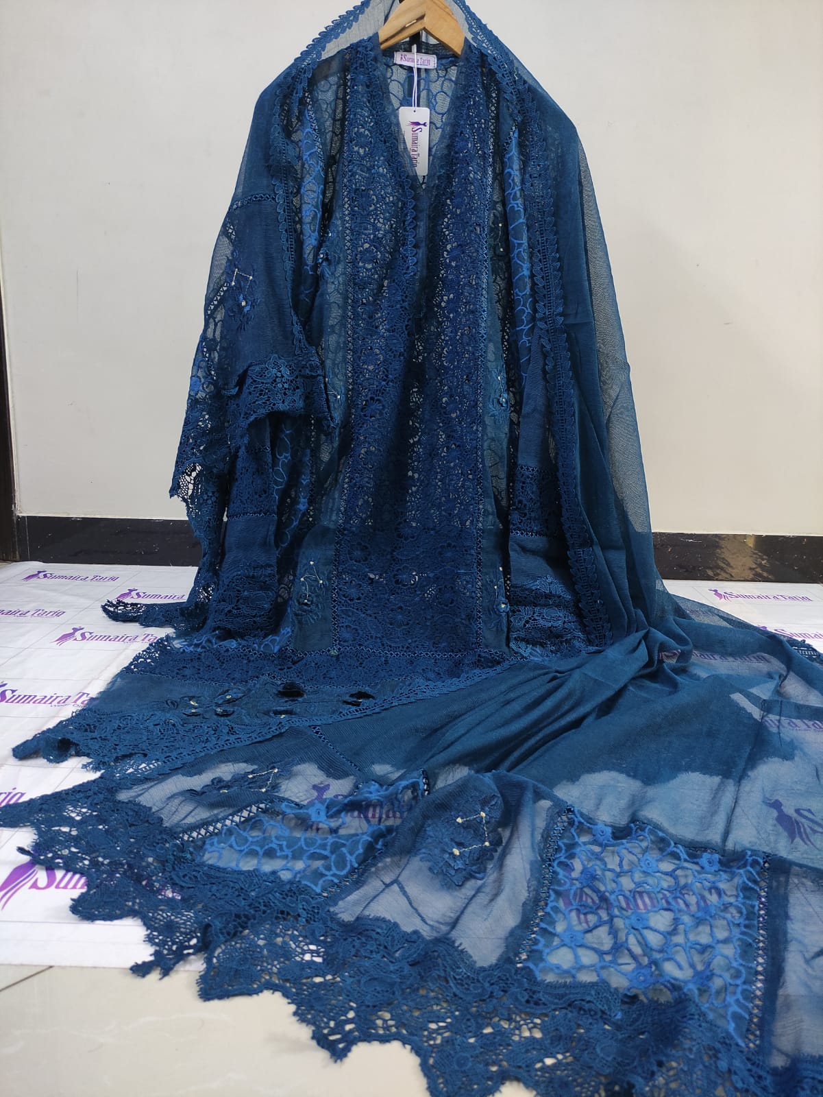 Experience timeless elegance with our most-demanded Khunki Collection. Crafted from premium Khadi Net fabric, this suit is designed with exquisite details that bring together tradition and modern charm.