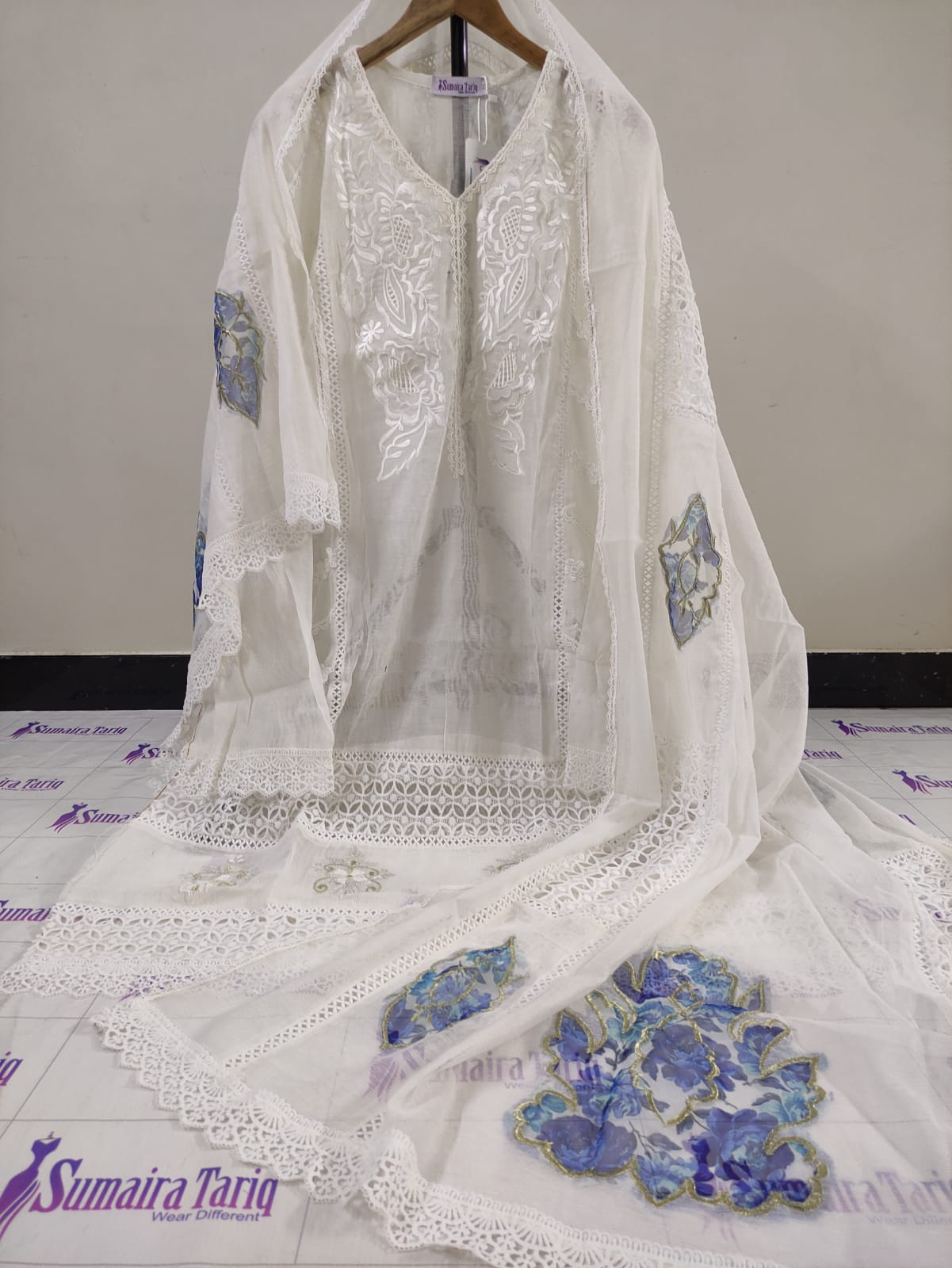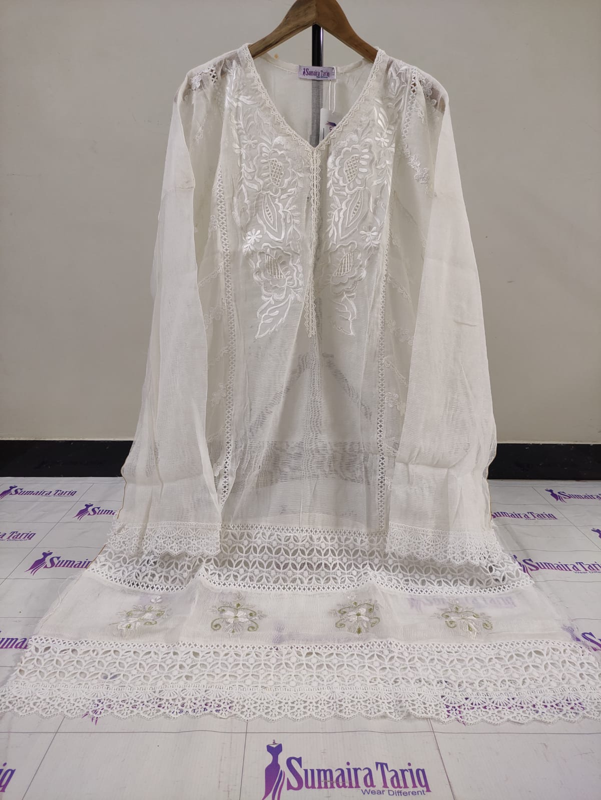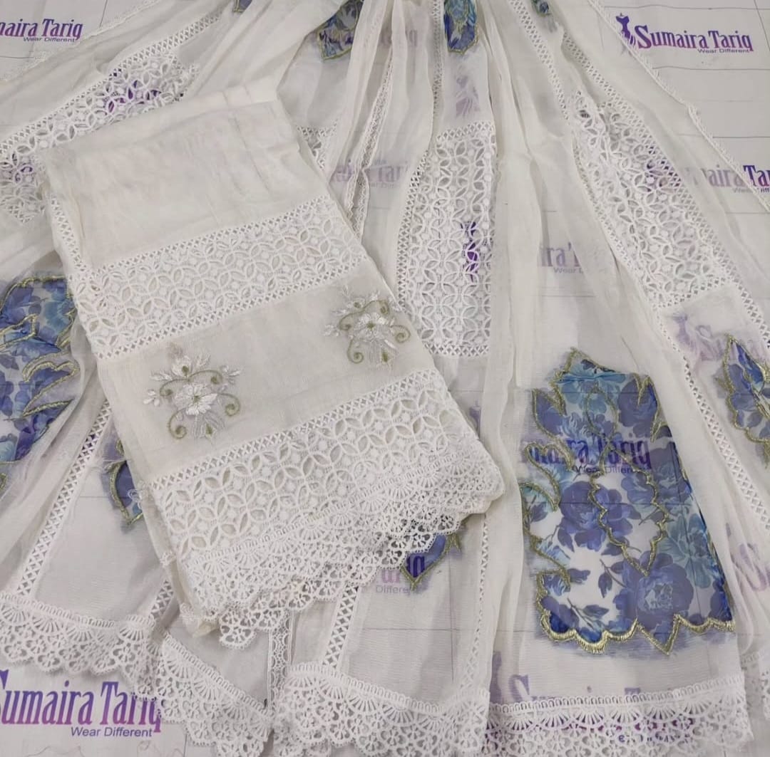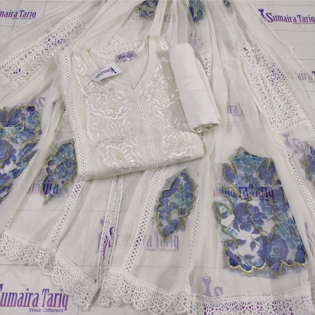 🌸 Flora Cutwork Collection 🌸 Elegant Resham Embroidery & Stylish Neckline Cutwork – Perfect for evening wear Step into timeless elegance with our Flora Cutwork Collection, featuring intricate resham embroidery and exquisite cutwork detailing. Designed on premium Khaddi Net, this semi-stitched outfit offers a graceful flow and versatile fit for sizes Small to XXL. ✨ Product Details: Shirt: Semi-stitched Khaddi Net Designer Shirt (Length: 45–47″) – Side open design for easy adjustments Dupatta: Ready-to-wear heavy Organza with appliqué & lace work (2.75 yards) Trouser: Unstitched fabric Work: Fine Resham embroidery with cutwork and organza appliqué Colors: Available in 10 stunning shades Fit: Semi-stitched – adjustable from Small to XXL 💵 Price: Rs. 5,500 🚚 Delivery Charges: Rs. 300 (All over Pakistan) 📦 Cash on Delivery: Available nationwide 🌍 Worldwide Shipping & Wholesale: Available ✂️ Stitching Service: Available for overseas customers