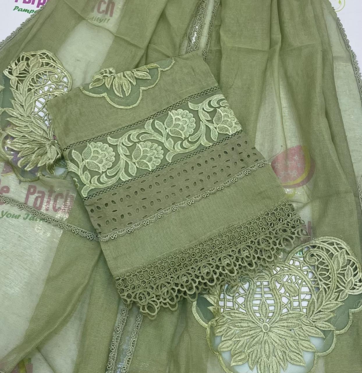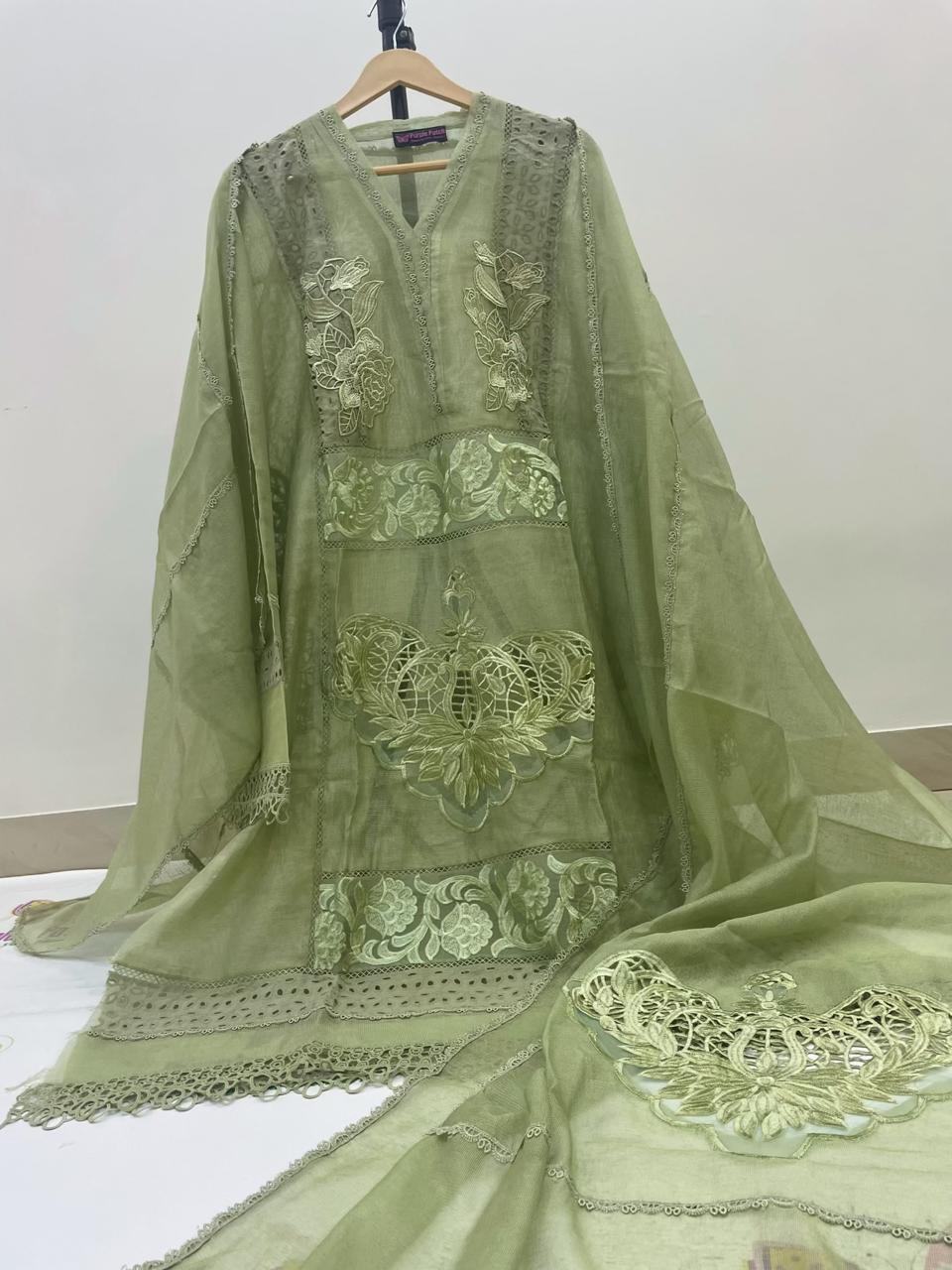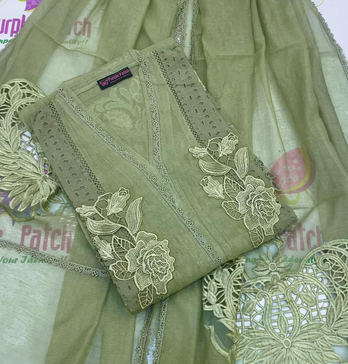 Eid Zaira Collection – Premium 2-Piece Semi-Stitched Khadi Cotton Net Suit Celebrate Eid in effortless elegance with our exclusive Eid Zaira Collection, crafted for women who appreciate timeless tradition with a modern touch. This beautifully designed 2-piece semi-stitched suit features exquisite Chicken Kari cutwork embroidery on premium Khadi cotton net, offering a graceful and luxurious festive look. The semi-stitched shirt allows you to tailor the fit exactly to your preference, ensuring both comfort and a flattering silhouette. Paired with a ready-to-wear embroidered dupatta, this ensemble is perfect for creating a sophisticated Eid outfit that stands out. Product Highlights Fabric: Premium Khadi Cotton Net Work: Intricate Chicken Kari Cutwork Embroidery Shirt: Semi-stitched with customizable stitching (Small to XXL) Shirt Length: 45 inches for an elegant fall Dupatta: Ready-to-wear, 2.75 meters Colours: Available in 9 stunning shades Occasion: Ideal for Eid, festive gatherings, and formal wear Designed to combine comfort, elegance, and versatility, the Eid Zaira Collection is a must-have addition to your festive wardrobe. Dry clean recomended