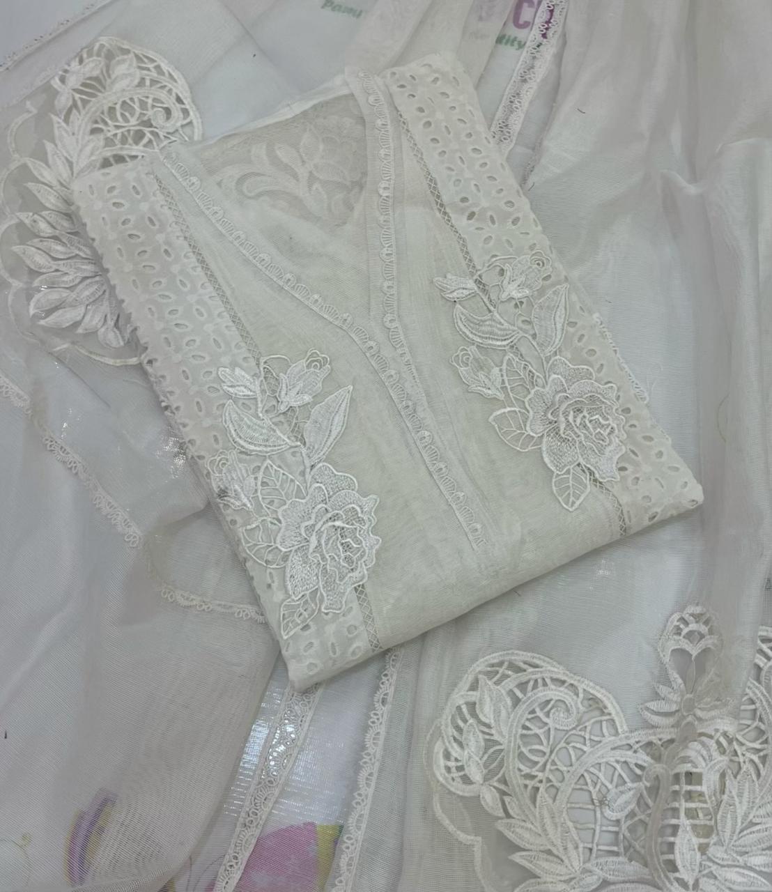 Eid Zaira Collection – Premium 2-Piece Semi-Stitched Khadi Cotton Net Suit Celebrate Eid in effortless elegance with our exclusive Eid Zaira Collection, crafted for women who appreciate timeless tradition with a modern touch. This beautifully designed 2-piece semi-stitched suit features exquisite Chicken Kari cutwork embroidery on premium Khadi cotton net, offering a graceful and luxurious festive look. The semi-stitched shirt allows you to tailor the fit exactly to your preference, ensuring both comfort and a flattering silhouette. Paired with a ready-to-wear embroidered dupatta, this ensemble is perfect for creating a sophisticated Eid outfit that stands out. Product Highlights Fabric: Premium Khadi Cotton Net Work: Intricate Chicken Kari Cutwork Embroidery Shirt: Semi-stitched with customizable stitching (Small to XXL) Shirt Length: 45 inches for an elegant fall Dupatta: Ready-to-wear, 2.75 meters Colours: Available in 9 stunning shades Occasion: Ideal for Eid, festive gatherings, and formal wear Designed to combine comfort, elegance, and versatility, the Eid Zaira Collection is a must-have addition to your festive wardrobe. Dry clean recomended