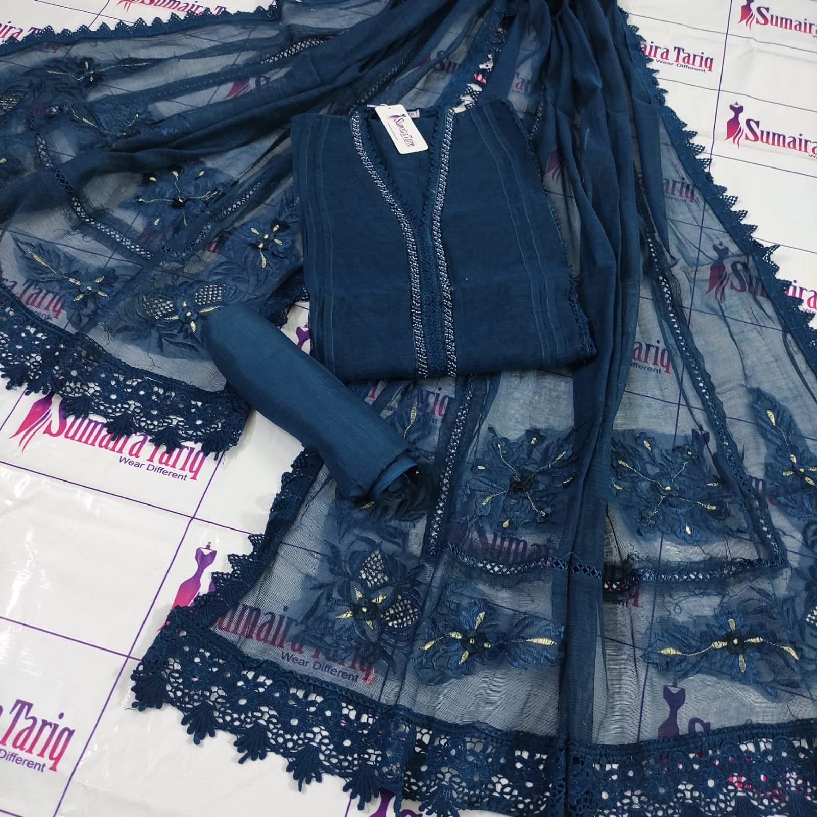 ✨ Chandni Collection – Elegant 3-Piece Khadi Net Suits ✨ Step into elegance with our Chandni Collection, featuring exquisite Khadi Net 3-piece suits available in 10 stunning colours. Perfect for festive occasions, weddings, or formal gatherings — this collection blends luxury with timeless grace. 🌸 Product Details: Type: Semi-stitched (customizable from S to XXL) Shirt: Premium Khadi Net with intricate handwork and delicate lace detailing Trouser: Soft and elegant Raw Silk fabric Dupatta: 2.75 meters of beautifully crafted 3D embroidered net Shirt Length: 45″+ Price: PKR 6,000 Delivery Charges: PKR 300 🧵 Additional Services: Stitching facility available Wholesale options on set purchases Worldwide delivery 📲 Order Now: WhatsApp: 0321-2533733 Website: www.purple-patch.com.pk Indulge in the charm of handcrafted elegance — because every outfit deserves a touch of Purple Patch perfection.